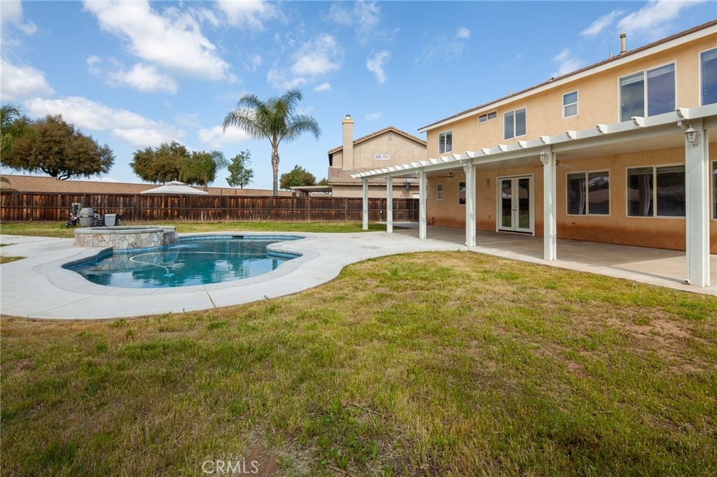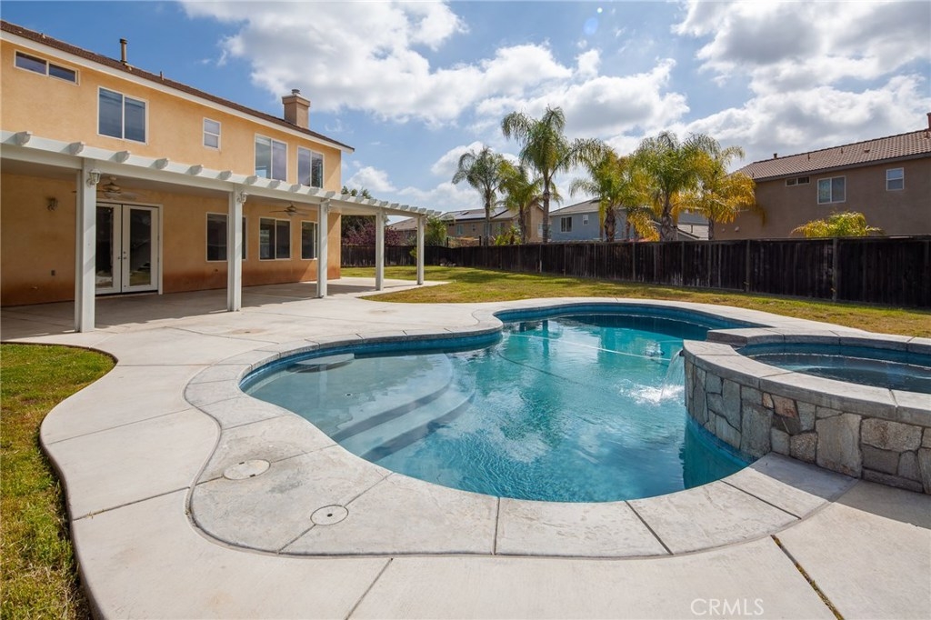 Murrieta POOL home with a LOFT, MAIN FLOOR bedroom, and NO HOA! Welcome home to the freshly upgraded property in the highly desirable community of Mapleton. This 4 bed, 3 bath master piece boasts over 2500 sqft of upgrades and sits on just under 12,000sqft lot with a main floor bedroom. As you enter the home you are greeted by tall ceilings, tons of natural light, open floor plan with brand new upgraded paint, tile, new plush carpet, large baseboards, crown moulding and large windows throughout the home. The first floor features a main floor bedroom with bath which is secluded, a formal dining room, butlers pantry, open concept kitchen and family room. The large family room boasts, new carpet and paint, large windows, roaring gas fireplace and opens to the newly upgraded kitchen. The kitchen features granite counters, new painted white cabinets, stainless steel double oven, dishwasher, tons of storage and walk-in pantry or storage area, and seperate laundry room. The second story features a huge loft opened to the spacious secondary bedrooms and bath, new paint, carpet, and upgraded bath. The master bedroom is huge with lots of windows and boasts fresh paint and new carpet with a large master bath appointed with upgraded LVP flooring & walk-in closet. The entertainers yard is designed with a custom fresh water smart pool and spa, lots of grass, and new alumawood patio cover. Located 1 mile to the 215, close to shopping and hospital, this is a home you don't want to miss!