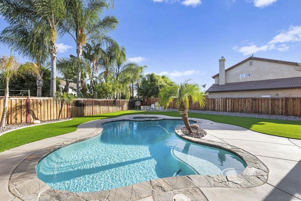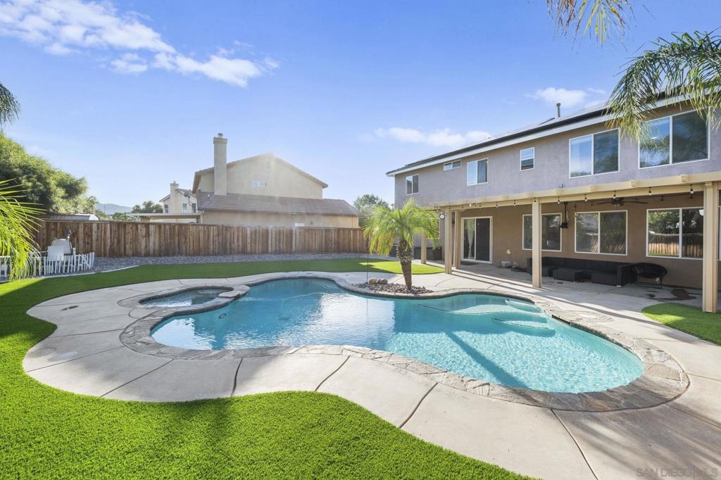Assumable 3% mortgage rate for VA buyers! Welcome to your private oasis in the heart of Murrieta! This delightful 4-bedroom, 3-bathroom residence at is a perfect blend of comfort, style, and functionality. Located in a friendly neighborhood and boasting over $50,000 in recent upgrades , this property offers an exceptional living experience. The private backyard includes a spacious patio area, perfect for al fresco dining and enjoying California's beautiful weather. Take a refreshing dip on a sunny day or unwind in the soothing spa under the stars, this feature will be a highlight of your outdoor living experience. Pets and children will love playing on the turfed landscape. The well-appointed kitchen is a chef's delight, with granite countertops, stainless steel appliances, ample cabinet space, and a convenient island that doubles as a breakfast bar. The primary bedroom is a true retreat, featuring a walk-in closet and an en-suite bathroom with a soaking tub, separate shower, and dual vanities. Plenty of parking and additional storage with 3 car garage equipped with Tesla car-charger. Enjoy energy efficiency with the solar lease. Situated in the heart of Murrieta, you'll have easy access to shopping, dining, parks, and top-rated schools. Commuters will appreciate the proximity to major highways for a stress-free daily commute. The 4th bedroom downstairs is not actually a bedroom as there is no closet. 3rd Garage parking doesn't have entry to home. This property is a must see! Seller will entertain offers between $749,999 - $799,000.