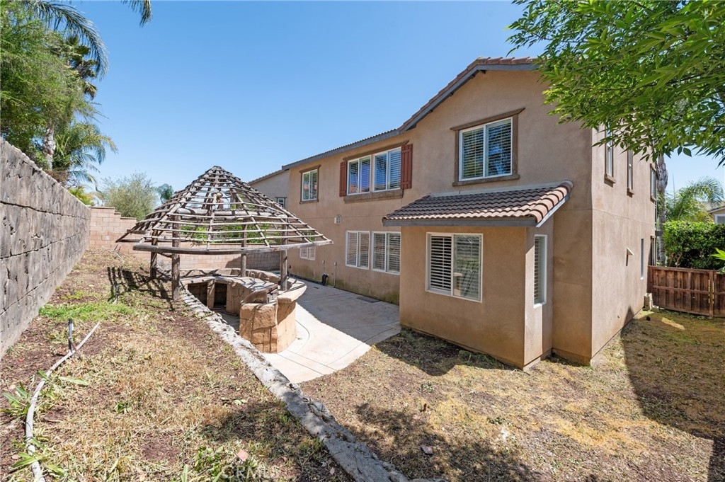 The property extends to the backyard, which features a built-in BBQ and Palapa structure, perfect for outdoor entertainment. With plenty of space for activities and relaxation, the backyard is an ideal retreat. The home also includes a three-car garage and ample driveway space for additional parking.