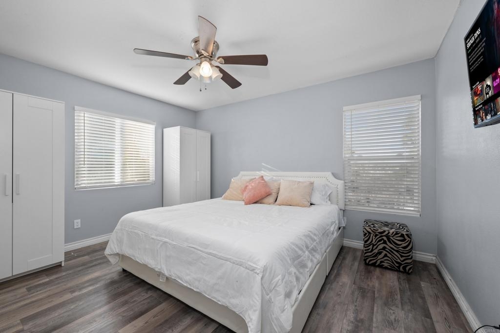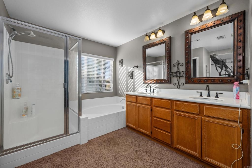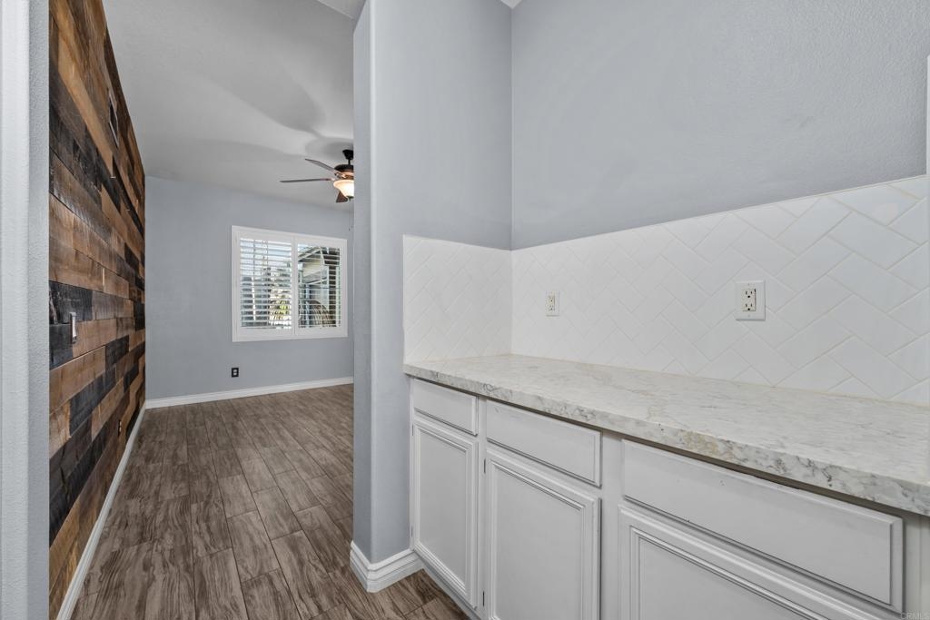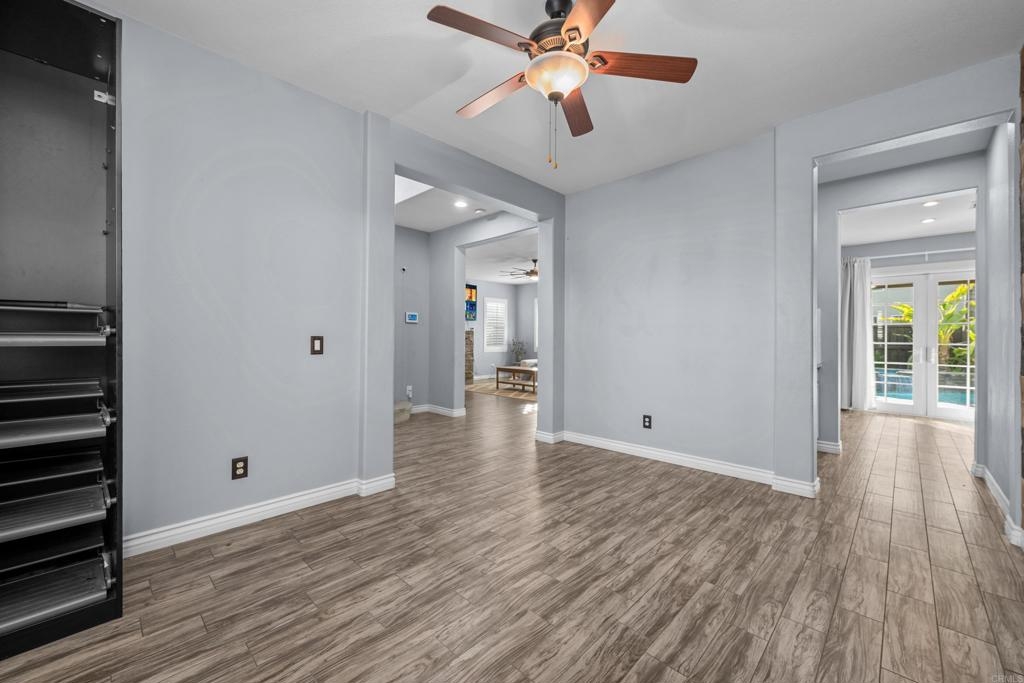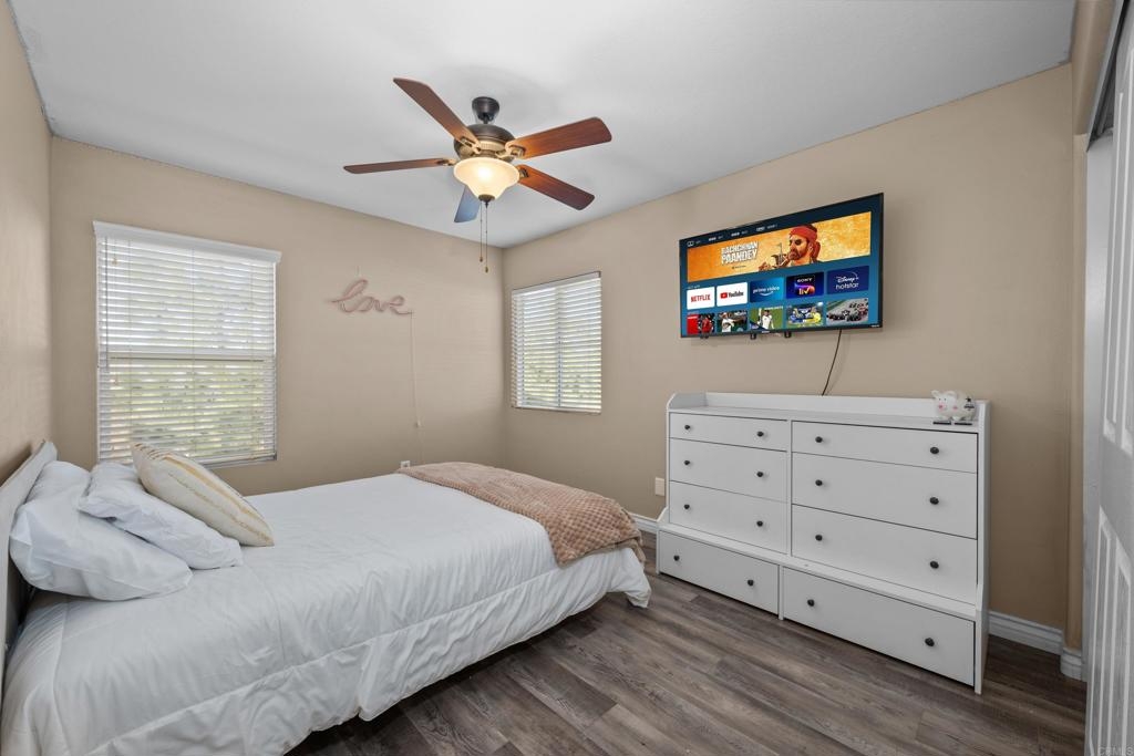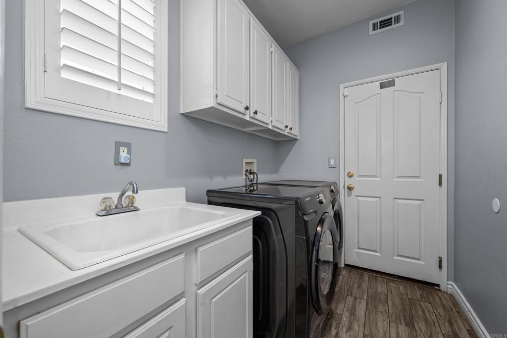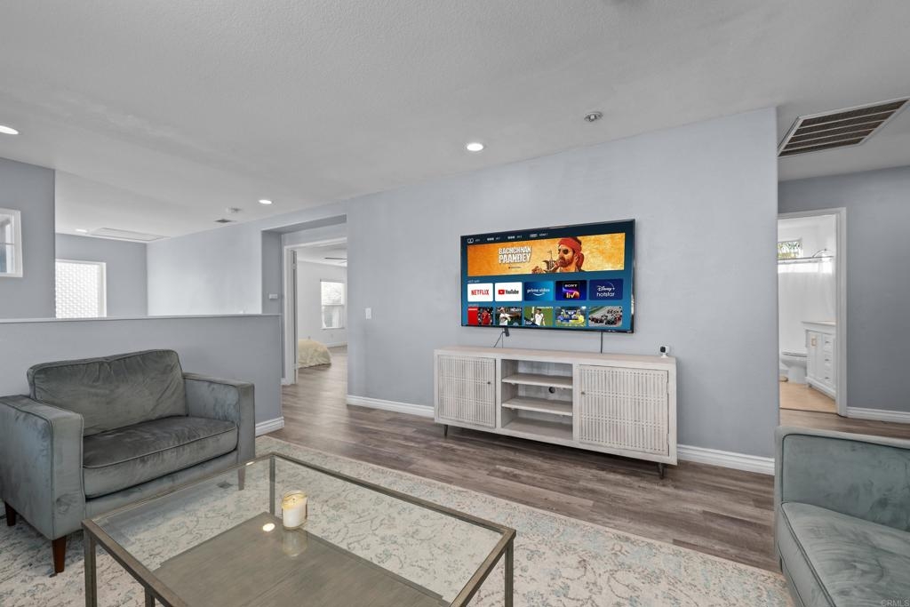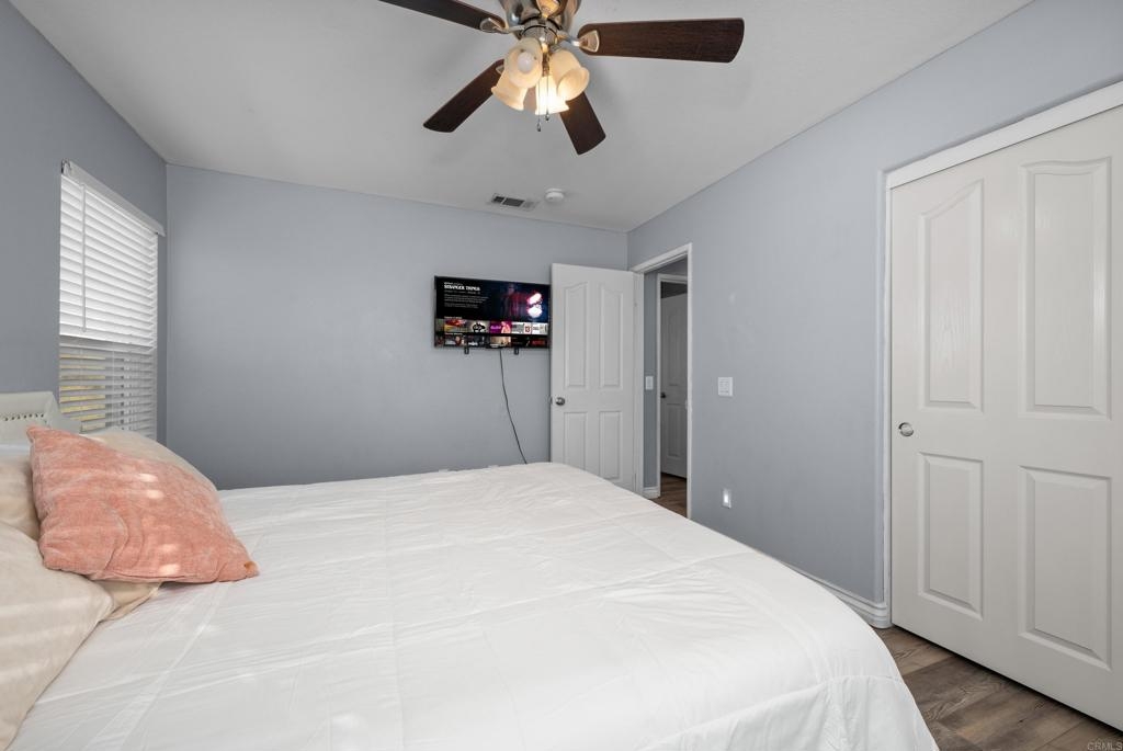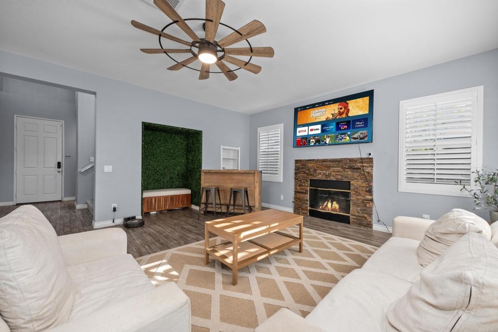 Welcome to this stunning entertainer’s dream home, nestled in the highly sought-after Mapleton community of Murrieta with NO HOA! Step inside to discover an inviting open floor plan with stylish grey wood-look tile flooring and upgraded baseboards throughout the main level. The bright and airy atmosphere flows seamlessly from the formal dining room to the spacious great room and stunning kitchen. The chef-inspired kitchen boasts pristine white Quartz countertops, a charming farmhouse sink, crisp white cabinetry, and sleek stainless steel appliances, making it the perfect space for both cooking and entertaining. The adjacent laundry room offers built-in cabinets and a utility room, in addition to this it features the convenience of a bedroom and full bathroom on the first level. Upstairs, you’ll find upgraded luxury vinyl plank flooring throughout, along with a large open loft area ideal for a home office or media space. The spacious master suite features a serene atmosphere, a walk-in closet, and a spa-like ensuite bath. Two additional guest bedrooms share a beautifully appointed guest bathroom, complete with granite countertops and elegant finishes. The backyard is truly an oasis, offering a sparkling pool and spa with a cascading fountain spillway, surrounded by lush tropical landscaping and a green artificial turf area. Two dog runs make it easy to care for your pets, while the expansive Alumawood patio cover provides ample shaded space to relax. The PAID SOLAR allows you to enjoy your pool and electric use without the worry of high costs. Located just blocks from schools, parks and minutes away from shopping, dining, and major healthcare providers like Loma Linda Hospital and Kaiser. Located at the end of a peaceful cul-de-sac with no neighbors on one side and adjacent to scenic nature trails, this gorgeous home offers both privacy and serenity.
