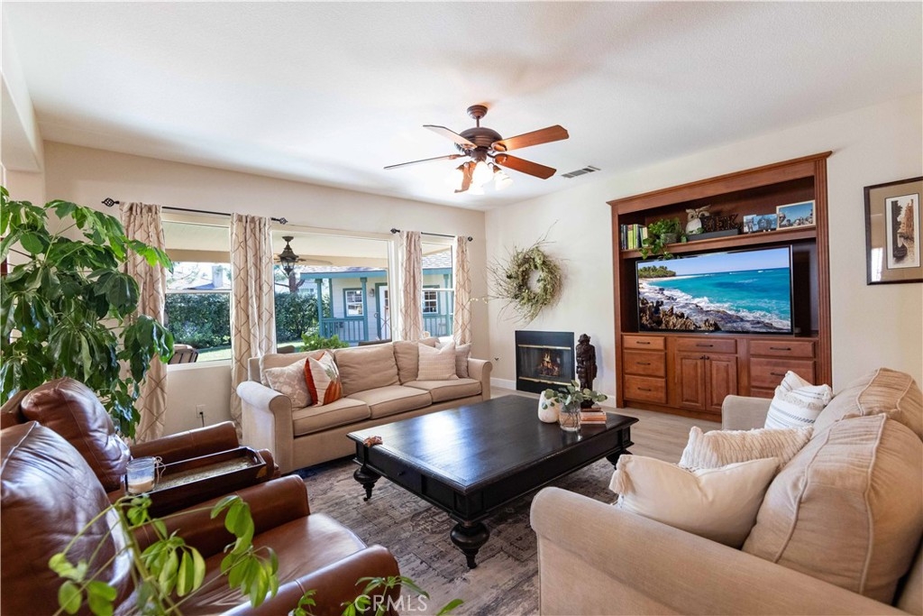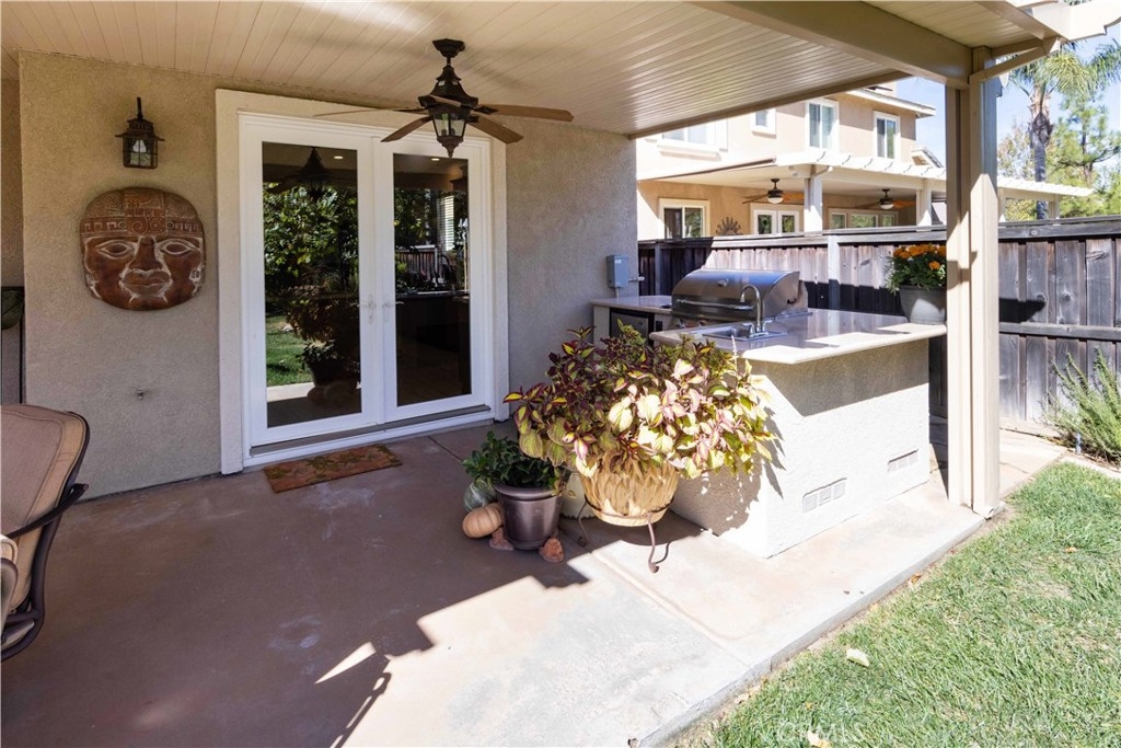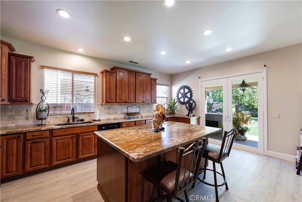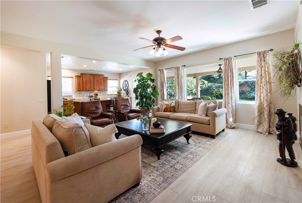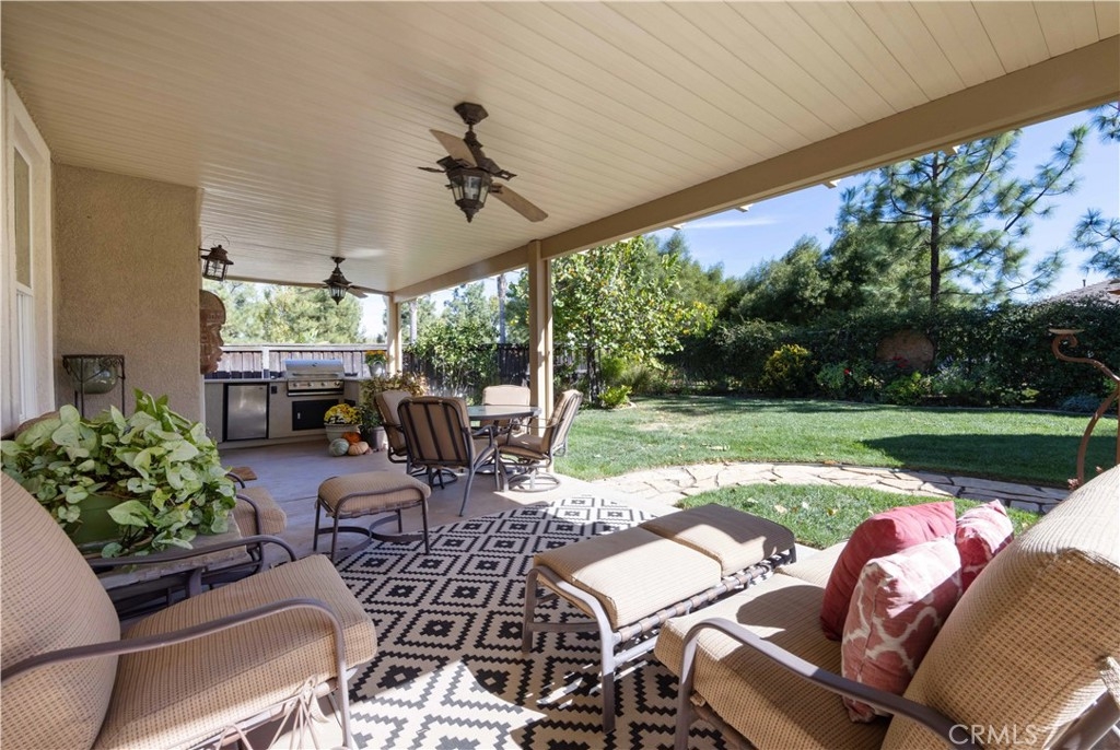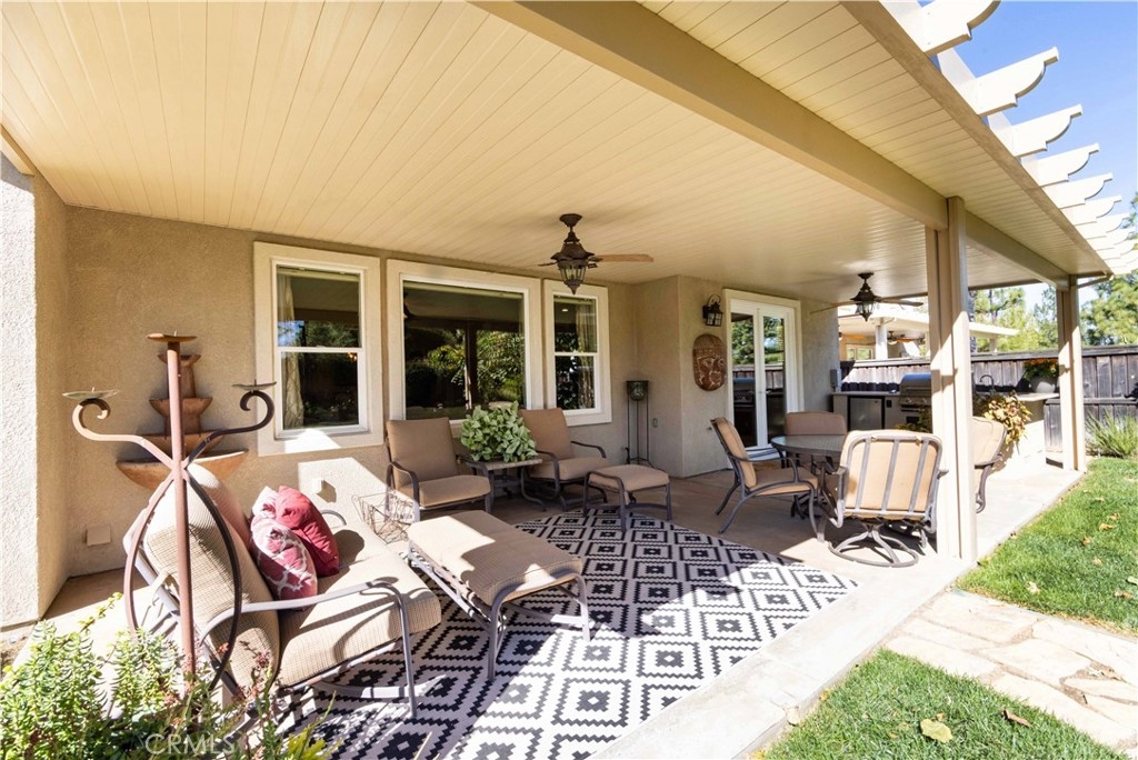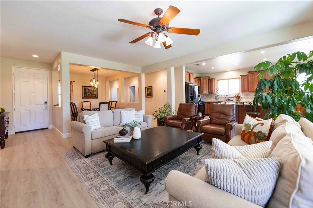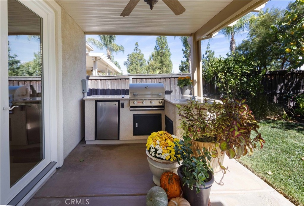 Welcome to this upgraded 1,972-square-foot single-story home featuring 4 bedrooms and 2 bathrooms, located in the community of Mapleton. Nestled near the end of a tree-lined cul-de-sac and close to the community walking trail, this residence boasts exceptional curb appeal with mature landscaping. Upon entering, you’ll discover an open floor plan that seamlessly connects the kitchen and family room, complemented by charming dining area and a convenient indoor laundry room. The private master suite is situated away from the additional bedrooms, ensuring privacy. The kitchen has been remodeled, showcasing an expanded center island and additional counter space adorned with leather-finished Brazilian granite and a stylish tumbled marble backsplash. Elegant maple wood cabinets feature soft-close drawers, “lazy susans,” and pull-out shelves. Modern conveniences include a GE Profile dual-fuel electric oven/gas range and a Samsung refrigerator. Both bathrooms have undergone stunning renovations, with the hallway/4th bedroom bathroom featuring quartz countertops, mirrors, a new vanity, and a tiled porcelain shower. The oversized primary bedroom is a true retreat, enhanced with cabinetry and a striking quartzite countertop. The primary bathroom boasts a porcelain-tiled shower, a new tub, mirrors, and a new vanity with quartz counters. Luxury plank vinyl flooring flows throughout the home, complemented by various upgrades including baseboards, lighting, ceiling fans, crown molding, and window coverings/shutters. Both the interior and exterior have been recently painted. The spacious, manicured backyard is perfect for entertaining, featuring a workshop with built-in cabinets, a raised irrigated vegetable bed, and a barbecue island complete with a sink and a “Bull” barbecue. Enjoy the added privacy of a greenbelt behind the home, providing a serene buffer from rear neighbors. This property has too many upgrades to list. Please note that while the home was originally designed as a 4-bedroom, it has been transformed into a 3-bedroom layout by removing a portion of a non-bearing wall. NO HOA. Don’t miss out on this exceptional home!