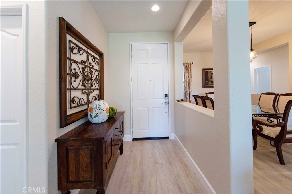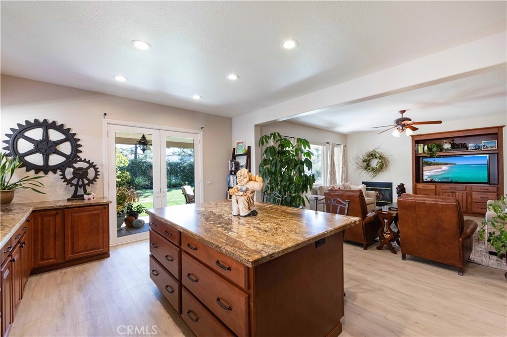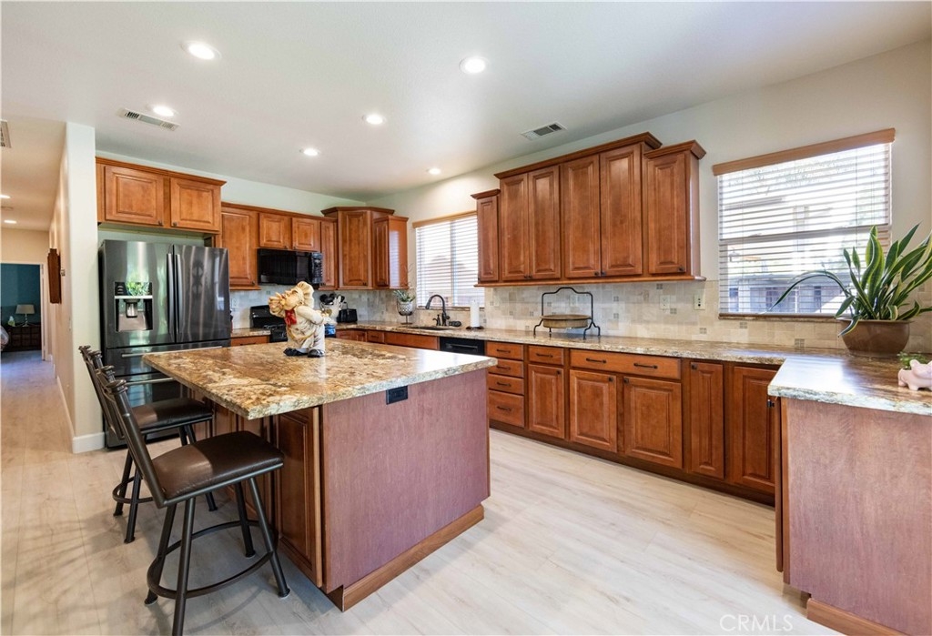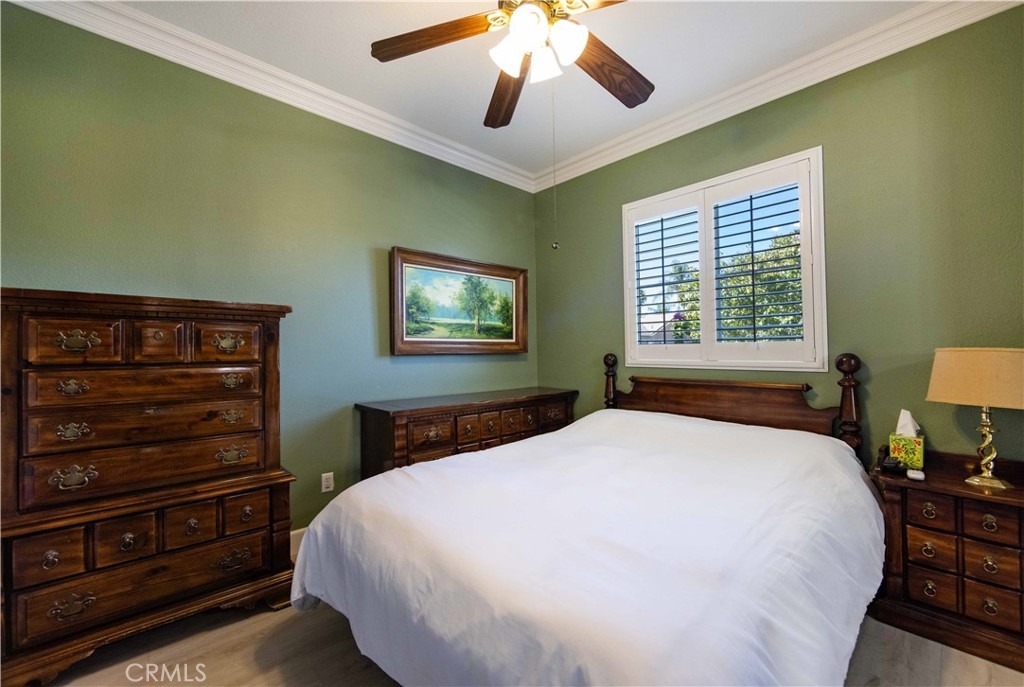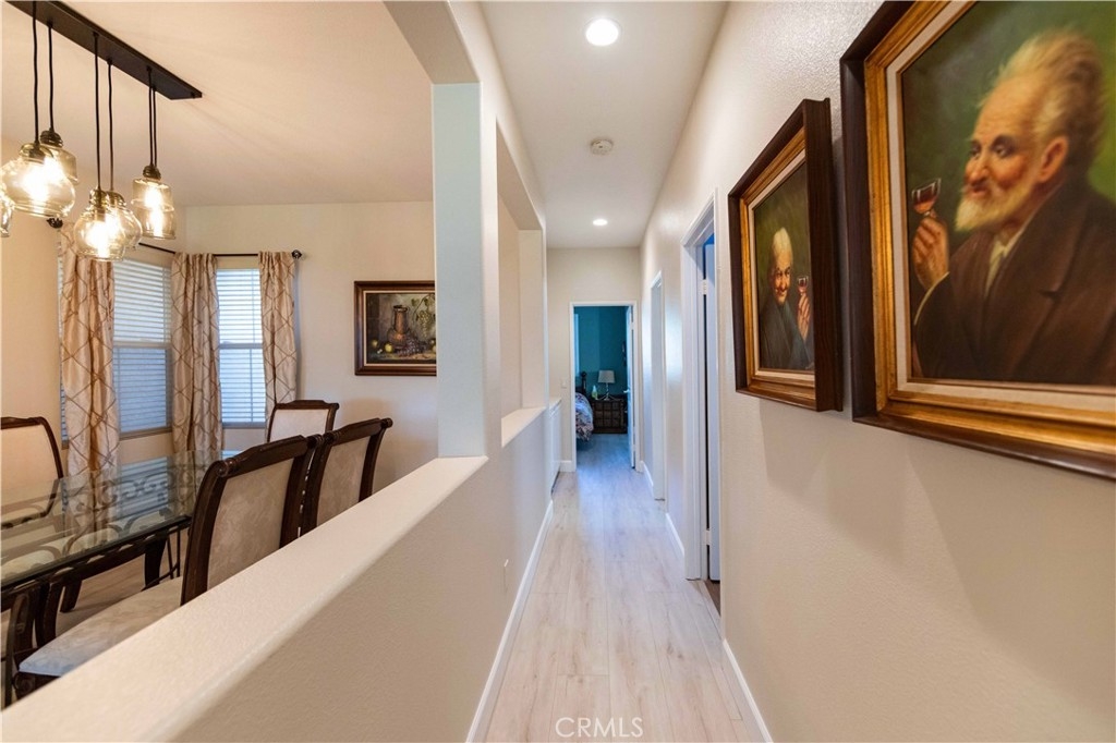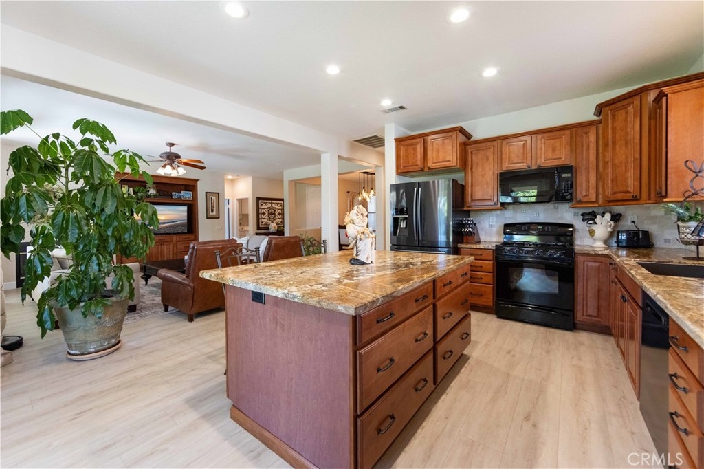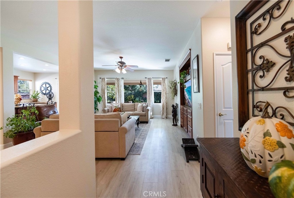 Welcome to this upgraded 1,972-square-foot single-story home featuring 4 bedrooms and 2 bathrooms, located in the community of Mapleton. Nestled near the end of a tree-lined cul-de-sac and close to the community walking trail, this residence boasts exceptional curb appeal with mature landscaping. Upon entering, you’ll discover an open floor plan that seamlessly connects the kitchen and family room, complemented by charming dining area and a convenient indoor laundry room. The private master suite is situated away from the additional bedrooms, ensuring privacy. The kitchen has been remodeled, showcasing an expanded center island and additional counter space adorned with leather-finished Brazilian granite and a stylish tumbled marble backsplash. Elegant maple wood cabinets feature soft-close drawers, “lazy susans,” and pull-out shelves. Modern conveniences include a GE Profile dual-fuel electric oven/gas range and a Samsung refrigerator. Both bathrooms have undergone stunning renovations, with the hallway/4th bedroom bathroom featuring quartz countertops, mirrors, a new vanity, and a tiled porcelain shower. The oversized primary bedroom is a true retreat, enhanced with cabinetry and a striking quartzite countertop. The primary bathroom boasts a porcelain-tiled shower, a new tub, mirrors, and a new vanity with quartz counters. Luxury plank vinyl flooring flows throughout the home, complemented by various upgrades including baseboards, lighting, ceiling fans, crown molding, and window coverings/shutters. Both the interior and exterior have been recently painted. The spacious, manicured backyard is perfect for entertaining, featuring a workshop with built-in cabinets, a raised irrigated vegetable bed, and a barbecue island complete with a sink and a “Bull” barbecue. Enjoy the added privacy of a greenbelt behind the home, providing a serene buffer from rear neighbors. This property has too many upgrades to list. Please note that while the home was originally designed as a 4-bedroom, it has been transformed into a 3-bedroom layout by removing a portion of a non-bearing wall. NO HOA. Don’t miss out on this exceptional home!