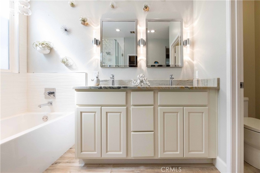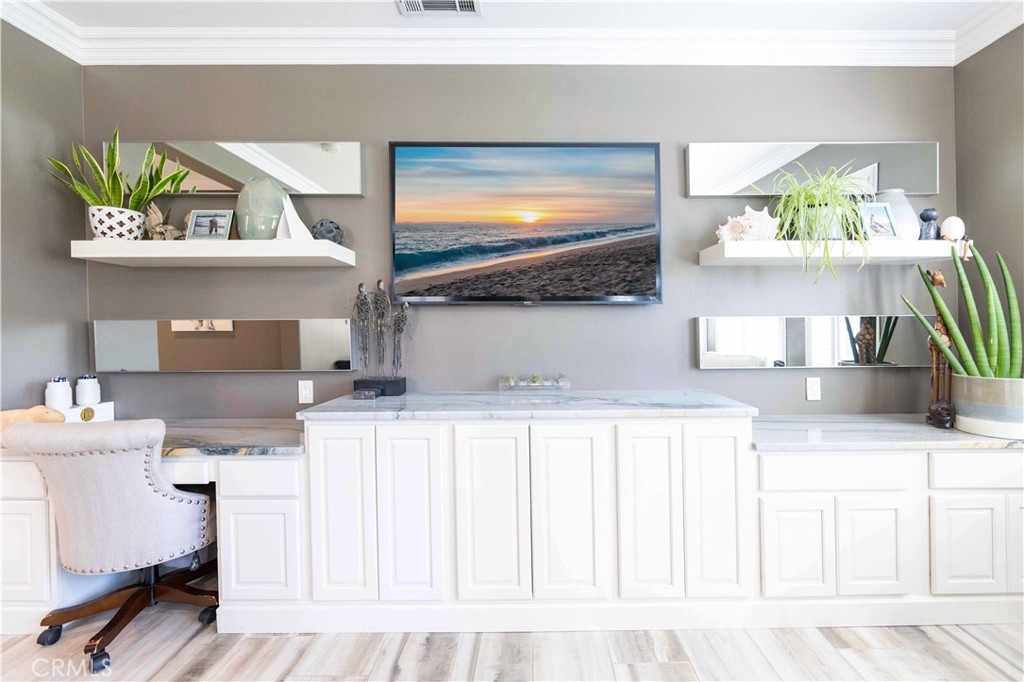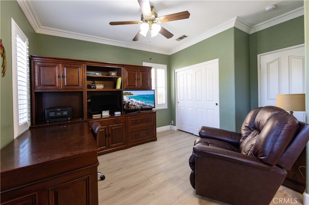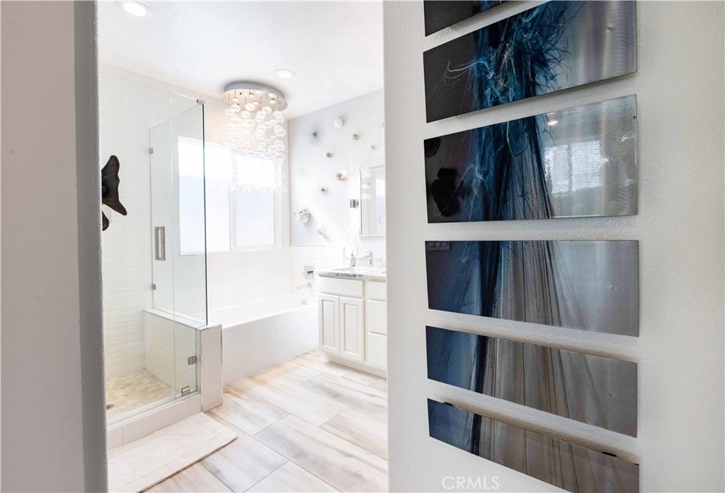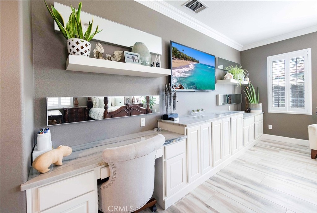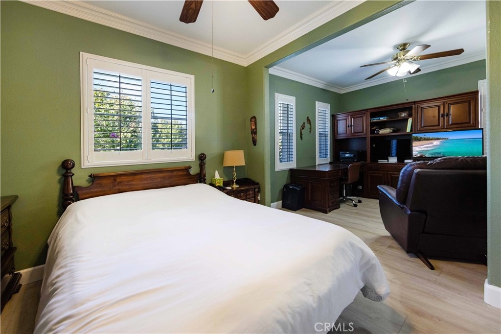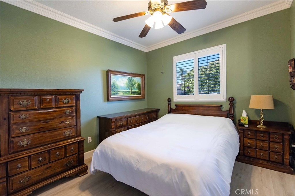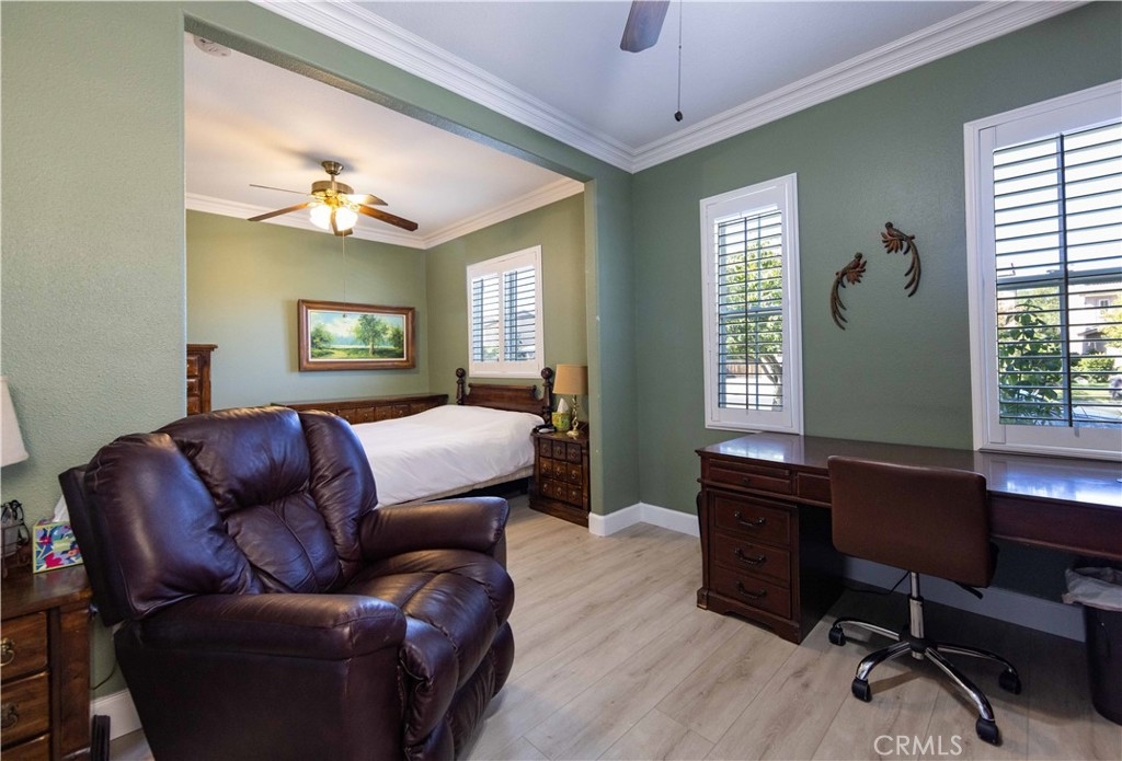 Welcome to this upgraded 1,972-square-foot single-story home featuring 4 bedrooms and 2 bathrooms, located in the community of Mapleton. Nestled near the end of a tree-lined cul-de-sac and close to the community walking trail, this residence boasts exceptional curb appeal with mature landscaping. Upon entering, you’ll discover an open floor plan that seamlessly connects the kitchen and family room, complemented by charming dining area and a convenient indoor laundry room. The private master suite is situated away from the additional bedrooms, ensuring privacy. The kitchen has been remodeled, showcasing an expanded center island and additional counter space adorned with leather-finished Brazilian granite and a stylish tumbled marble backsplash. Elegant maple wood cabinets feature soft-close drawers, “lazy susans,” and pull-out shelves. Modern conveniences include a GE Profile dual-fuel electric oven/gas range and a Samsung refrigerator. Both bathrooms have undergone stunning renovations, with the hallway/4th bedroom bathroom featuring quartz countertops, mirrors, a new vanity, and a tiled porcelain shower. The oversized primary bedroom is a true retreat, enhanced with cabinetry and a striking quartzite countertop. The primary bathroom boasts a porcelain-tiled shower, a new tub, mirrors, and a new vanity with quartz counters. Luxury plank vinyl flooring flows throughout the home, complemented by various upgrades including baseboards, lighting, ceiling fans, crown molding, and window coverings/shutters. Both the interior and exterior have been recently painted. The spacious, manicured backyard is perfect for entertaining, featuring a workshop with built-in cabinets, a raised irrigated vegetable bed, and a barbecue island complete with a sink and a “Bull” barbecue. Enjoy the added privacy of a greenbelt behind the home, providing a serene buffer from rear neighbors. This property has too many upgrades to list. Please note that while the home was originally designed as a 4-bedroom, it has been transformed into a 3-bedroom layout by removing a portion of a non-bearing wall. NO HOA. Don’t miss out on this exceptional home!