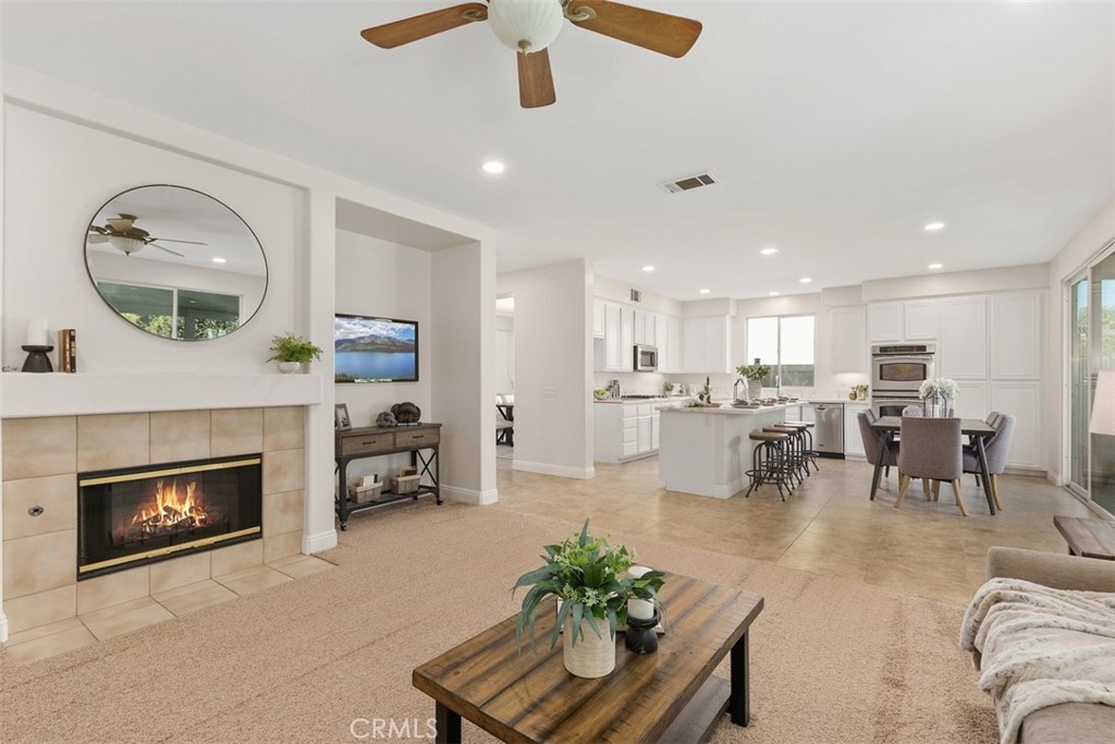 Situated on a quiet cul-de-sac in the Master Planned community of Mapleton (no HOA!), this newly reimagined property is ready for you to call it home. Fantastic curb appeal greets you via a freshly painted exterior & inviting front porch. Once inside you will immediately be drawn to the light & bright open concept living style, which starts off with a large living room & separate dining room, along with a downstairs bedroom & full bath leading to the laundry room & oversized garage. As we continue our tour we reach the gourmet kitchen, complete w/ white cabinetry, striking quartz countertops, stainless steel appliances (cooktop, double oven, dishwasher & microwave), a large pantry & equally large island which offers bar seating to go along with a breakfast nook. This space then flows into the family room which boasts a cozy fireplace. Off of which we have a large gym / workout room / flex space, which was once half of the massive 4 car garage (can be converted back if you'd like!). Last but not least in our tour of the downstairs we have the massive backyard space, which boasts a covered alumawood patio that runs the length of the home, large grassy yard for kids & pets, mature trees for the ultimate privacy, a fenced off area for a garden plus a large fenced-off side yard (park toys, put a shed, endless possibilities). Back inside and upstairs we have a large loft, two more secondary bedrooms which share a jack and jill bath and the Primary Suite, which includes an en-suite bath featuring dual sinks, a separate tub & shower & large walk-in closet. Additional improvements include new two-tone interior paint, new recessed lighting, new carpet to compliment the tile and wood floors and much more! Did I also mention it has dual A/C, which comes in handy for those warm summer months. Mapleton is located off the 215 between Clinton Keith & Scott Rd. The neighborhood offers walking trails, boasts NO HOA and is one of the most affordable in all of Murrieta! Come take a look for yourself and see why this home WON'T LAST LONG!