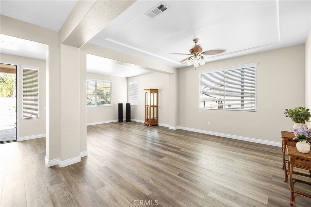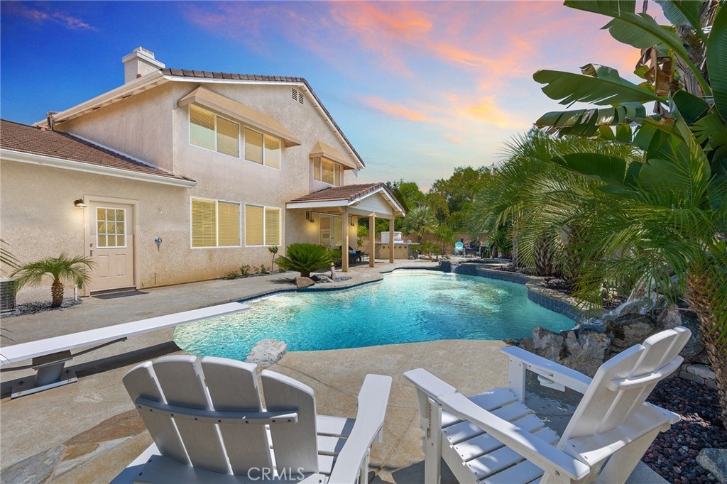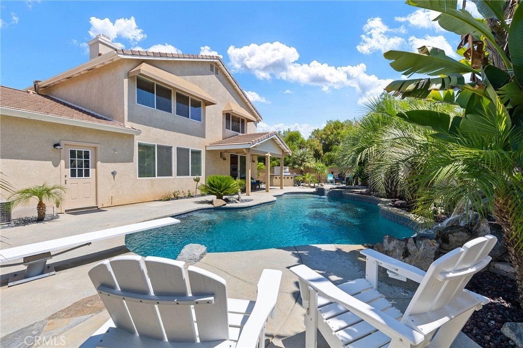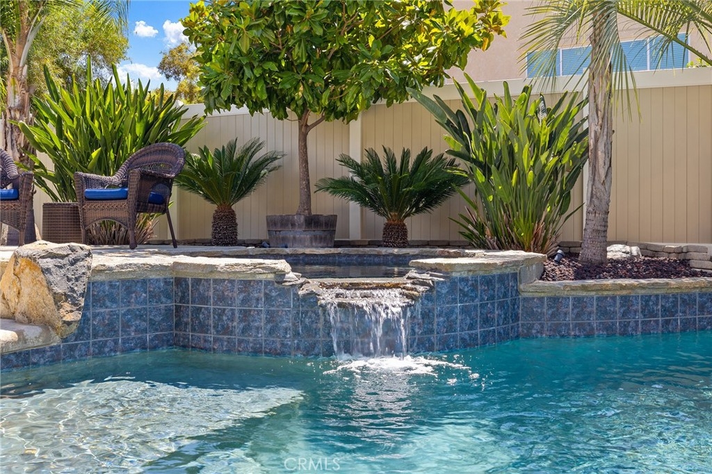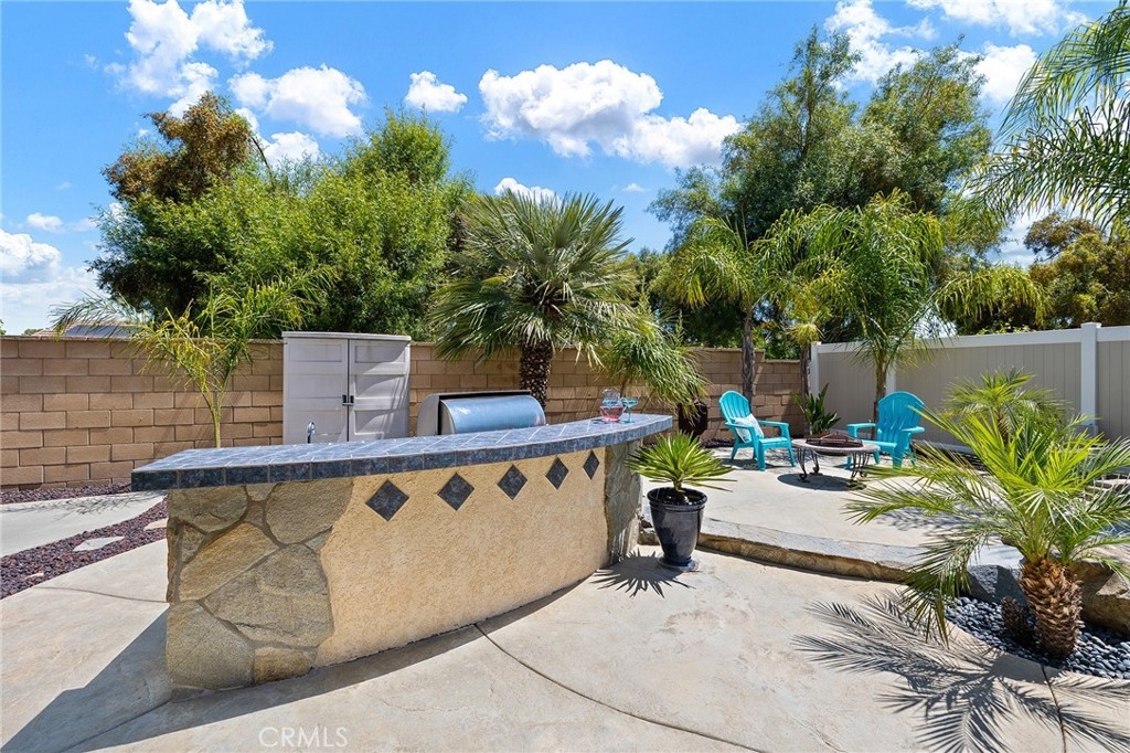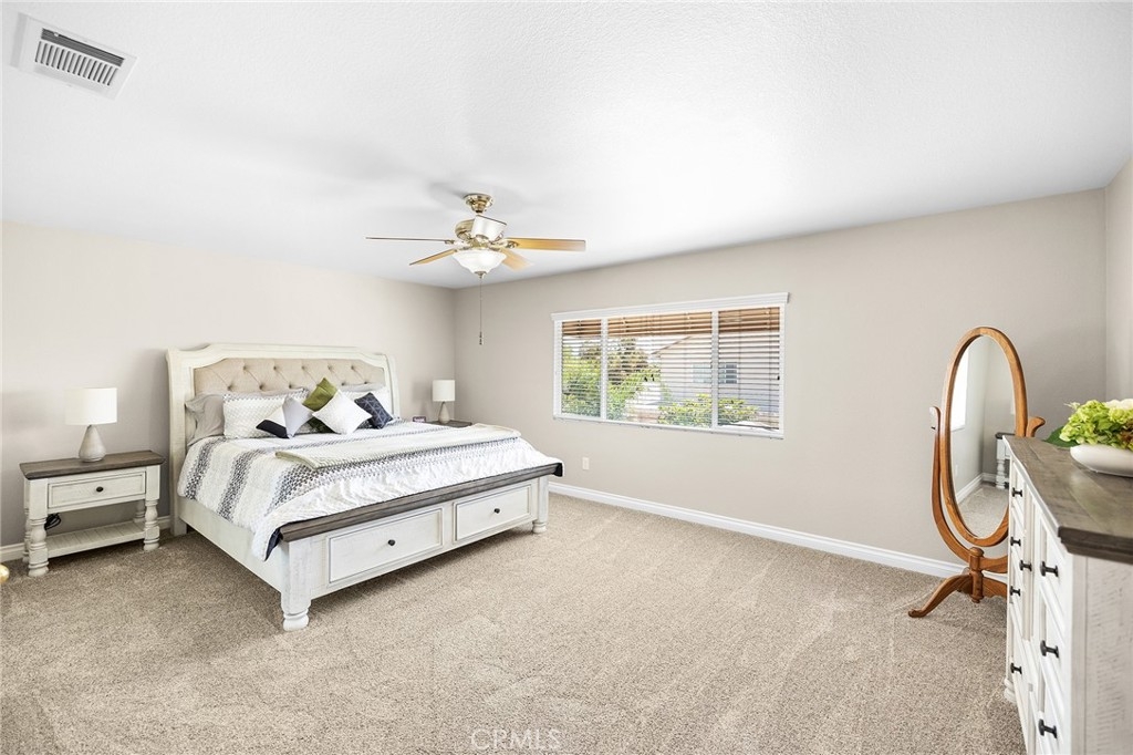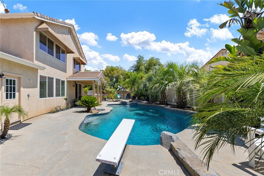 This home has it all! It is a car enthusiast's dream with an entertainer's dream backyard! A four car garage, double RV parking, covered RV parking, Barbecue island and a gorgeous pool and spa make this home a rare find! From the moment you arrive, this immaculately maintained corner lot home oozes curb appeal! The front yard features beautifully designed landscaping, an extended driveway for a total of 10+ car parking, resulting in extra wide road frontage and no neighbors directly across. There are also two RV Parking areas, one is the RV carport (92" plus) with access on the right side of the garage, and the second RV parking is 14' wide by 34' long with sewer cleanout and electrical outlet. The interior of the home offers 4 bedrooms and 3 bathrooms with a bedroom and full bath downstairs. Upstairs you will find a large game room loft, a primary bedroom with ensuite bathroom and upgraded closet, and two oversized secondary bedrooms with a Jack and Jill bathroom. The interior has been meticulously painted and upgraded with neutral tone paint, commercial grade luxury vinyl plank flooring, recently installed carpet, upgraded baseboards and window treatments. The laundry room is equipped with a utility sink and extra cabinet space and it is located off the 4 car which has extra cabinets which is perfect for a workshop or man cave! The bright kitchen with extra long island welcomes you through extra wide sliding doors into the gorgeous tropical backyard where you can enjoy the shade of the cathedral patio cover or jump from the diving board into the sparkling pool featuring depths of up to 8.5 feet, flagstone and rock coping and a gorgeous rock waterfall! You can also enjoy the spa while cooking in the barbecue island/outdoor kitchen area. This gorgeous backyard includes full landscaping with mature palm trees and tropical plants, fire pit with seating area, direct access to RV area & workshop, and solar pool heating as well as an outdoor shower! To add even more convenience, the Mapleton community offers a park with playground, sports courts, RC car track and a nature preserve with hiking trails with NO HOA and amazingly located a couple of minutes from hospitals, shopping and dining!