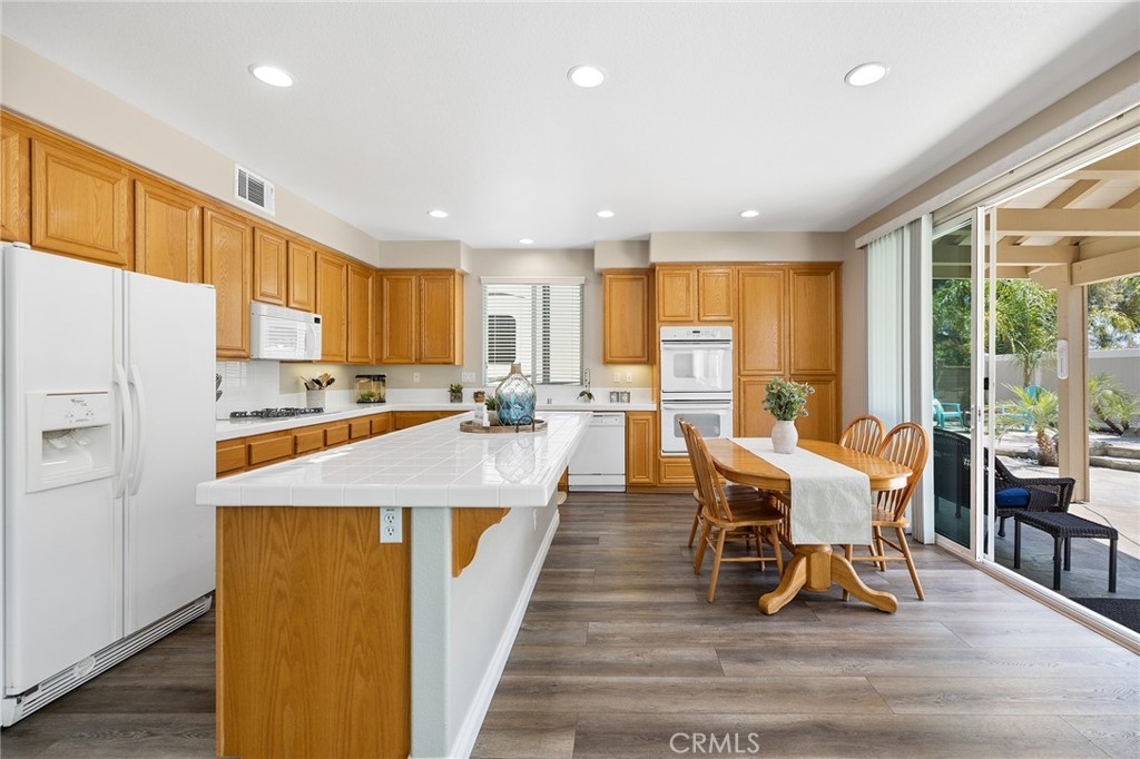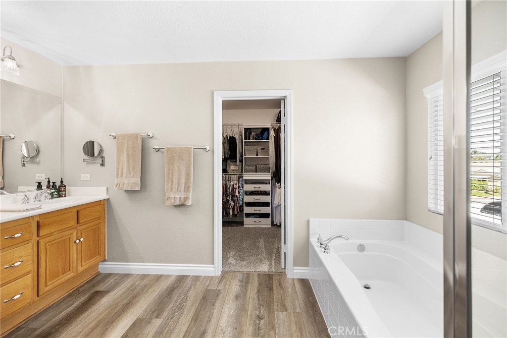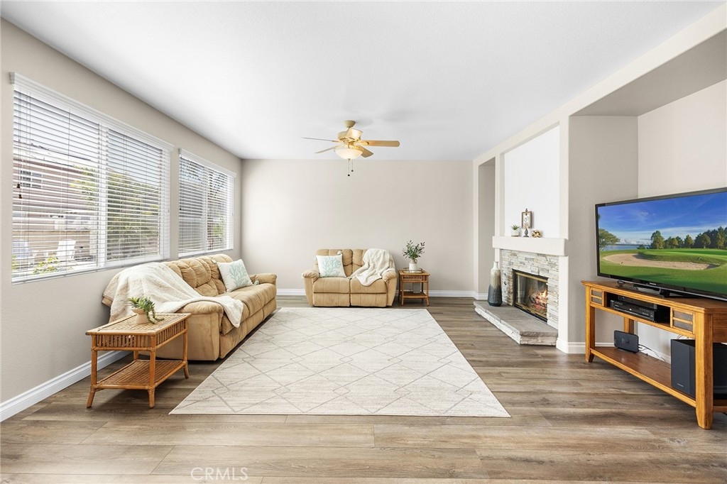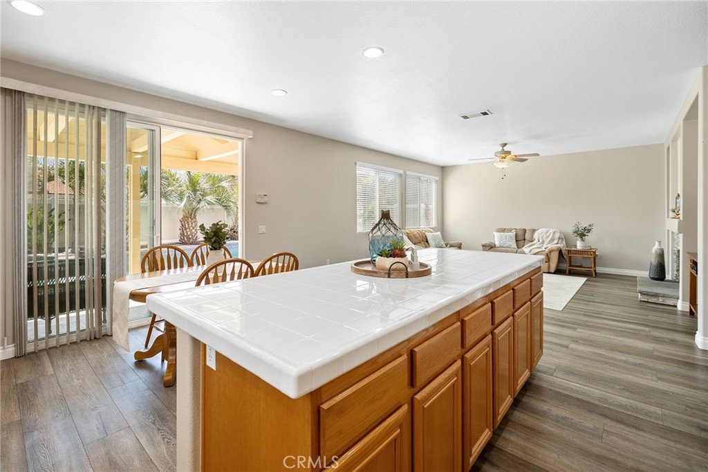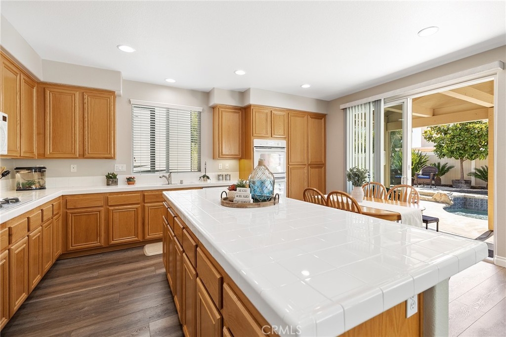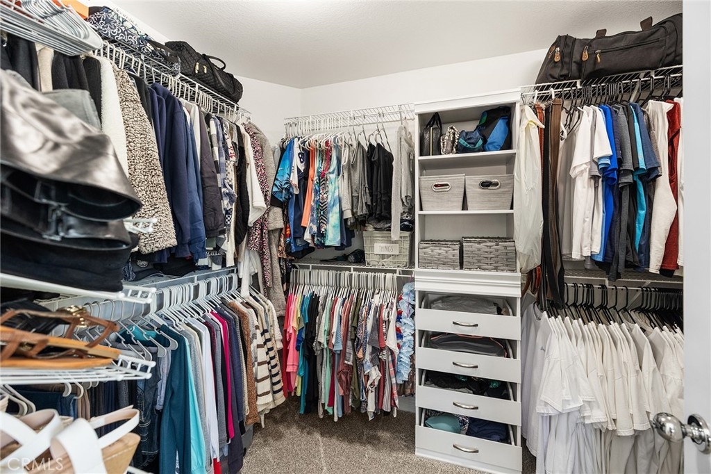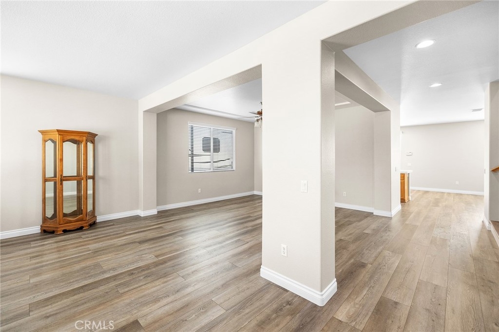 This home has it all! It is a car enthusiast's dream with an entertainer's dream backyard! A four car garage, double RV parking, covered RV parking, Barbecue island and a gorgeous pool and spa make this home a rare find! From the moment you arrive, this immaculately maintained corner lot home oozes curb appeal! The front yard features beautifully designed landscaping, an extended driveway for a total of 10+ car parking, resulting in extra wide road frontage and no neighbors directly across. There are also two RV Parking areas, one is the RV carport (92" plus) with access on the right side of the garage, and the second RV parking is 14' wide by 34' long with sewer cleanout and electrical outlet. The interior of the home offers 4 bedrooms and 3 bathrooms with a bedroom and full bath downstairs. Upstairs you will find a large game room loft, a primary bedroom with ensuite bathroom and upgraded closet, and two oversized secondary bedrooms with a Jack and Jill bathroom. The interior has been meticulously painted and upgraded with neutral tone paint, commercial grade luxury vinyl plank flooring, recently installed carpet, upgraded baseboards and window treatments. The laundry room is equipped with a utility sink and extra cabinet space and it is located off the 4 car which has extra cabinets which is perfect for a workshop or man cave! The bright kitchen with extra long island welcomes you through extra wide sliding doors into the gorgeous tropical backyard where you can enjoy the shade of the cathedral patio cover or jump from the diving board into the sparkling pool featuring depths of up to 8.5 feet, flagstone and rock coping and a gorgeous rock waterfall! You can also enjoy the spa while cooking in the barbecue island/outdoor kitchen area. This gorgeous backyard includes full landscaping with mature palm trees and tropical plants, fire pit with seating area, direct access to RV area & workshop, and solar pool heating as well as an outdoor shower! To add even more convenience, the Mapleton community offers a park with playground, sports courts, RC car track and a nature preserve with hiking trails with NO HOA and amazingly located a couple of minutes from hospitals, shopping and dining!