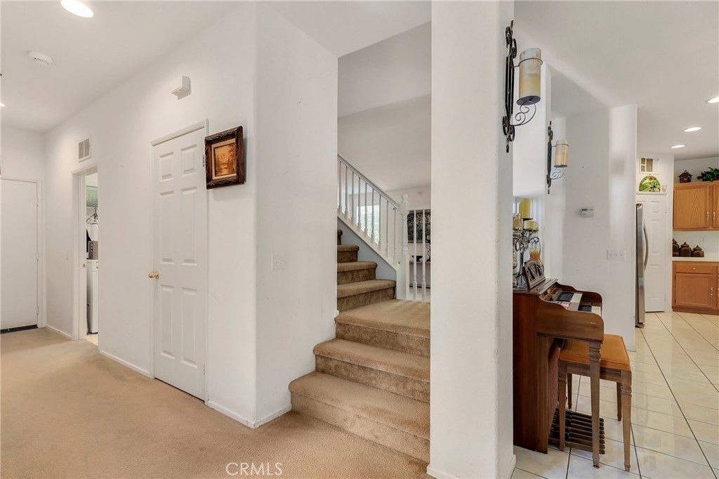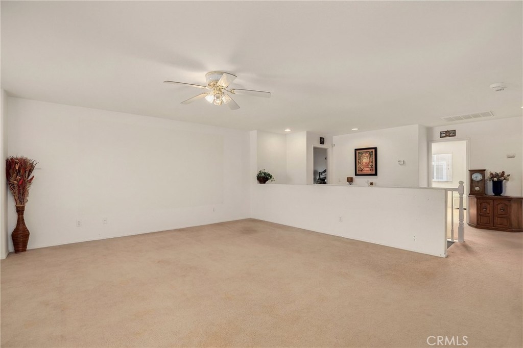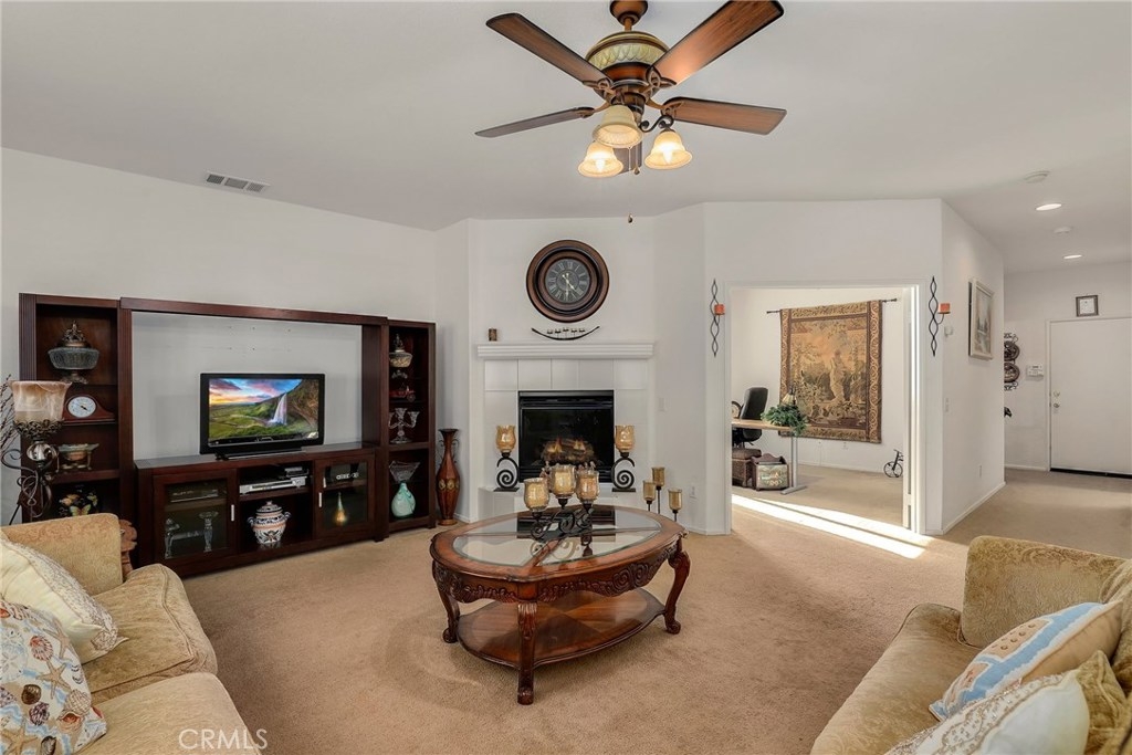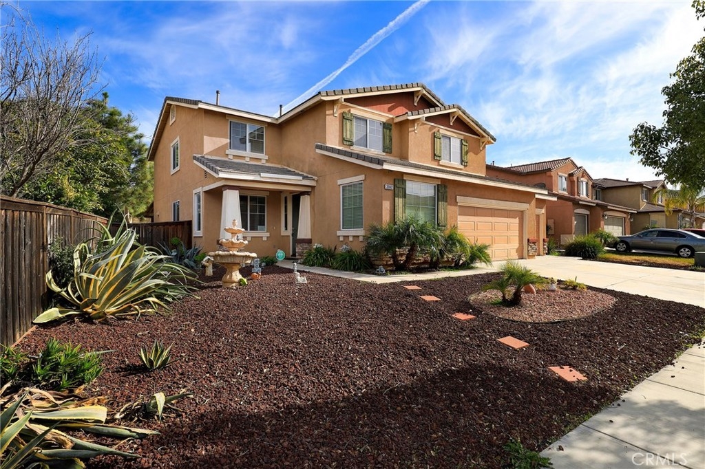 This fabulous two-story home is in the Mapleton area of Murrieta. Light-catching windows and recessed lighting complement the bright and open floor plan. Enter the first floor to an immaculate great room, complete with carpet flooring and a delightful formal dining area. The kitchen features a large pantry, wood cabinetry, neutral tile floors, tile counters, an island for extra storage, and an eating area. The family room features a cozy fireplace and fanlight. Downstairs, there is a 5th bedroom (currently used as an office), a full bath, and a laundry room w/ sink. Upstairs, is the large loft perfect for a game room or tv room. The master bedroom boasts soaring ceilings, a large walk-in closet, and an en-suite bathroom with double sinks, tile floors, shower, and tub. The secondary bedrooms offer ample closet space and share the full hall bathroom. The backyard offers a nice patio, a grassy area, and plenty of room for entertaining. This centrally located home has a water filtration system and a three-car garage. Residents enjoy being close to shopping, restaurants, recreation, parks, entertainment, and award-winning Temecula schools.