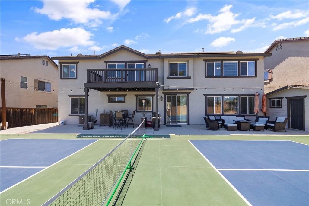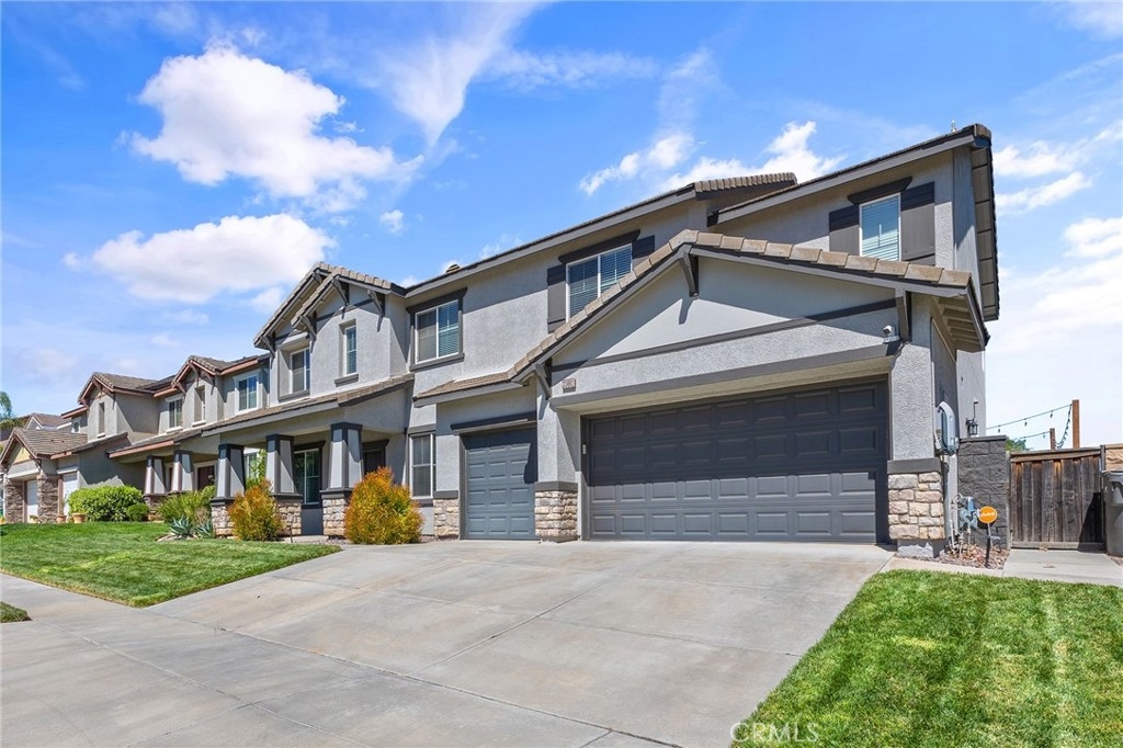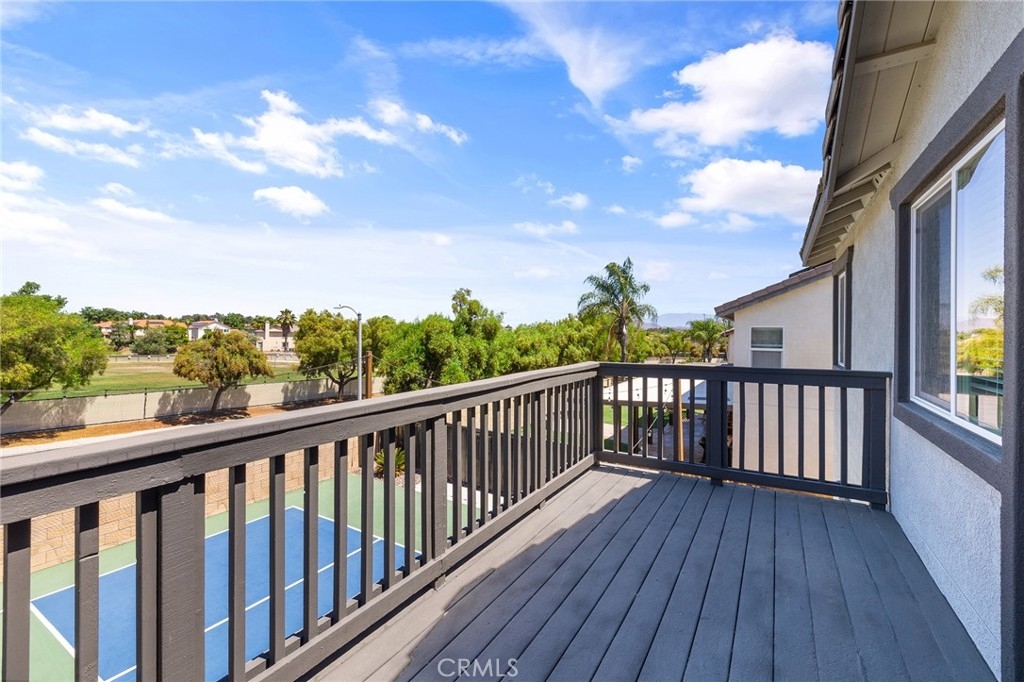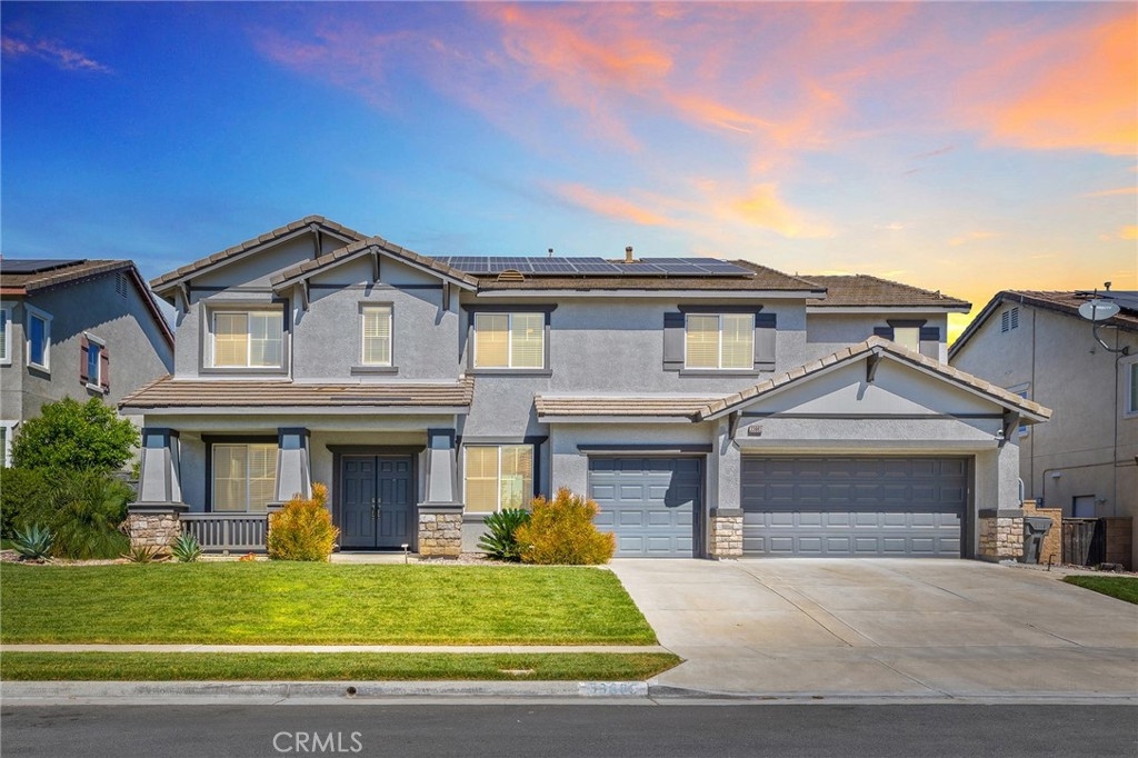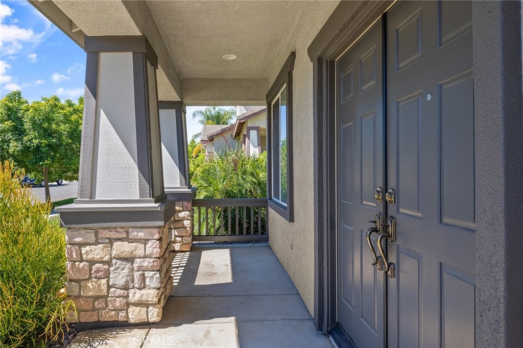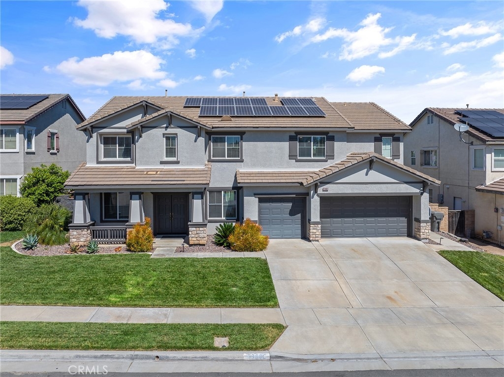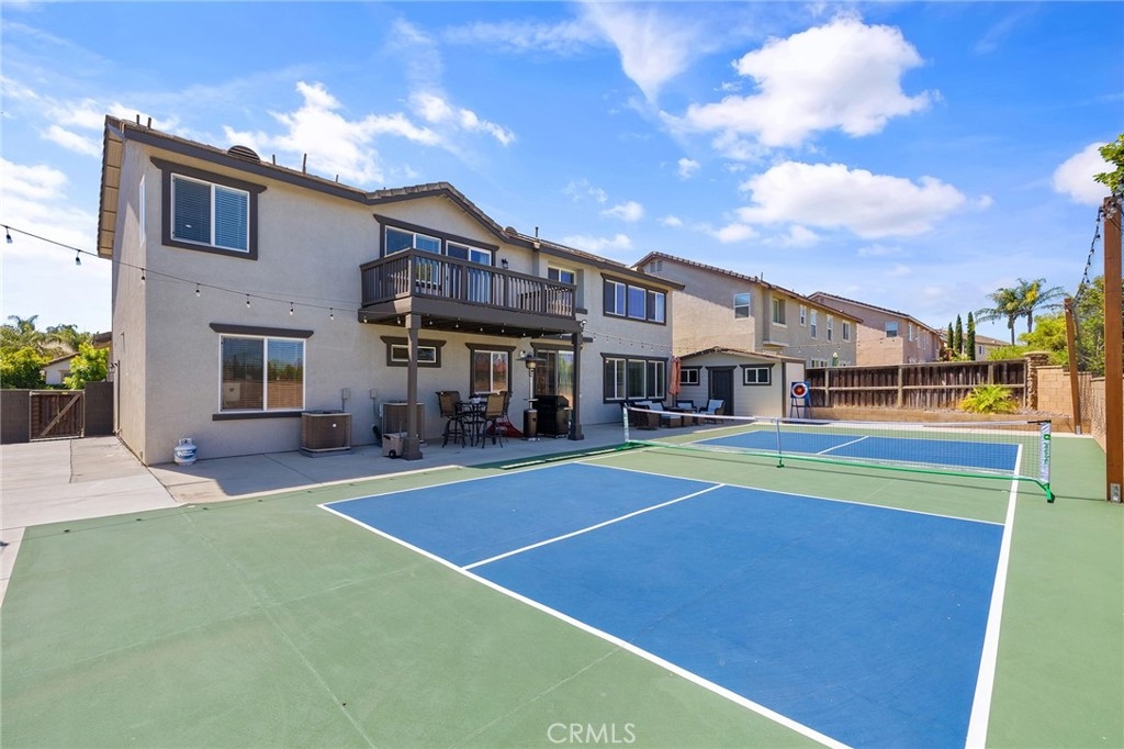 Stunning Mapleton Community Home - No HOA and PAID OFF SOLAR PANELS! Discover exceptional living in this beautifully appointed 5-bedroom, 3-bathroom home with 3-car garage, nestled in Murrieta's desirable Mapleton Community. This property offers outstanding curb appeal and sits on a large lot with complete privacy—no rear neighbors! Step through the front door into elegant formal living and dining rooms that set the tone for this impressive home. The heart of the house features a spacious kitchen with a large island, butler's pantry overlooking the formal dining room, and premium stainless steel appliances including a new dishwasher, oven, built-in microwave, and gas range stovetop. The kitchen flows seamlessly into the expansive family room, complete with a cozy fireplace—perfect for entertaining. A convenient downstairs bedroom and full bathroom provide flexible living options, while the downstairs laundry room adds everyday convenience. The second level houses three secondary bedrooms, including one with a jack-and-jill bathroom configuration. The oversized master suite is a true sanctuary, featuring an owner's retreat area and a sliding glass door opening to a generous balcony with great views. The luxurious master bathroom includes a separate shower, bathtub, dual vanities, and an enormous walk-in closet. An upstairs bonus room offers endless possibilities—transform it into a home theater, game room, or even a sixth bedroom to suit your lifestyle. Enjoy year-round comfort with a brand new 2024 HVAC system featuring high-efficiency climate control and advanced filtration for optimal indoor air quality. Experience ultimate energy independence with fully owned solar panels that reduce electricity bills to almost nothing while providing clean, renewable energy—no monthly lease payments and protection against rising utility costs for years to come! The backyard is an entertainer's dream, featuring a pickle ball/sport court, large storage shed, and extensive outdoor lighting with plenty of electrical outlets. The private setting with no rear neighbors ensures peaceful enjoyment of your outdoor space. This home has been meticulously maintained with newly installed blinds throughout and ceiling fans in every room, ensuring comfort and style in every space. Experience the perfect blend of luxury, functionality, and privacy in this exceptional Mapleton Community home—all without HOA restrictions!