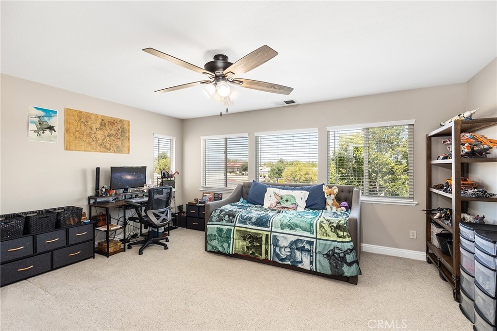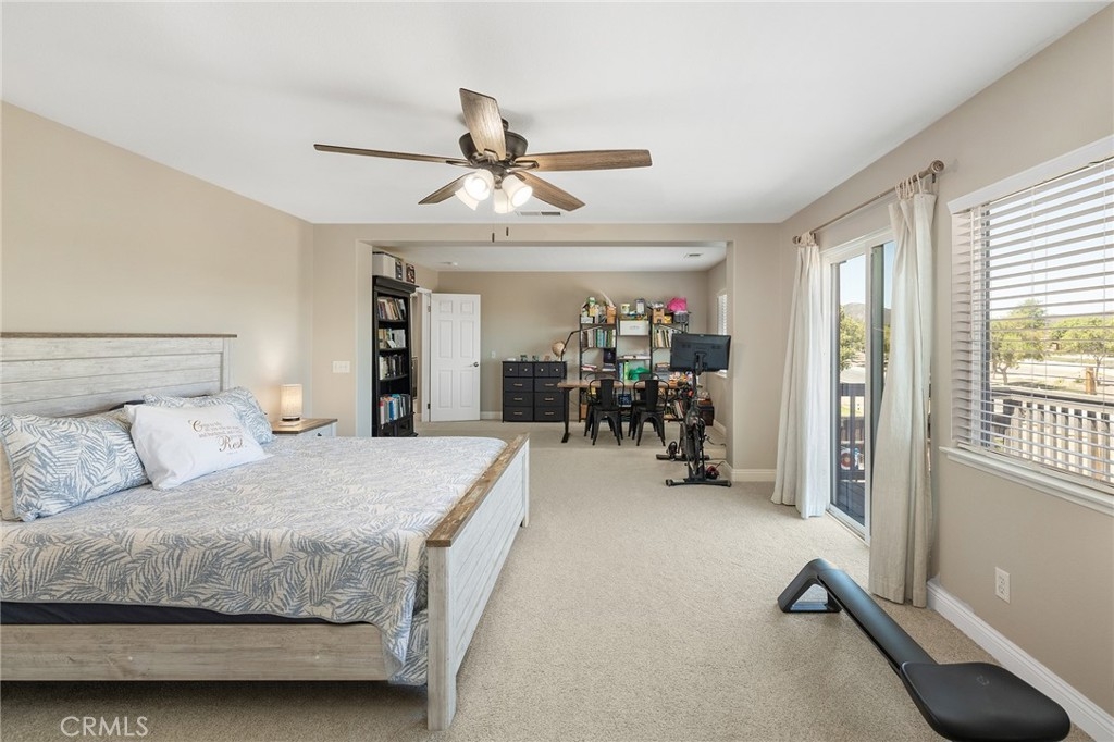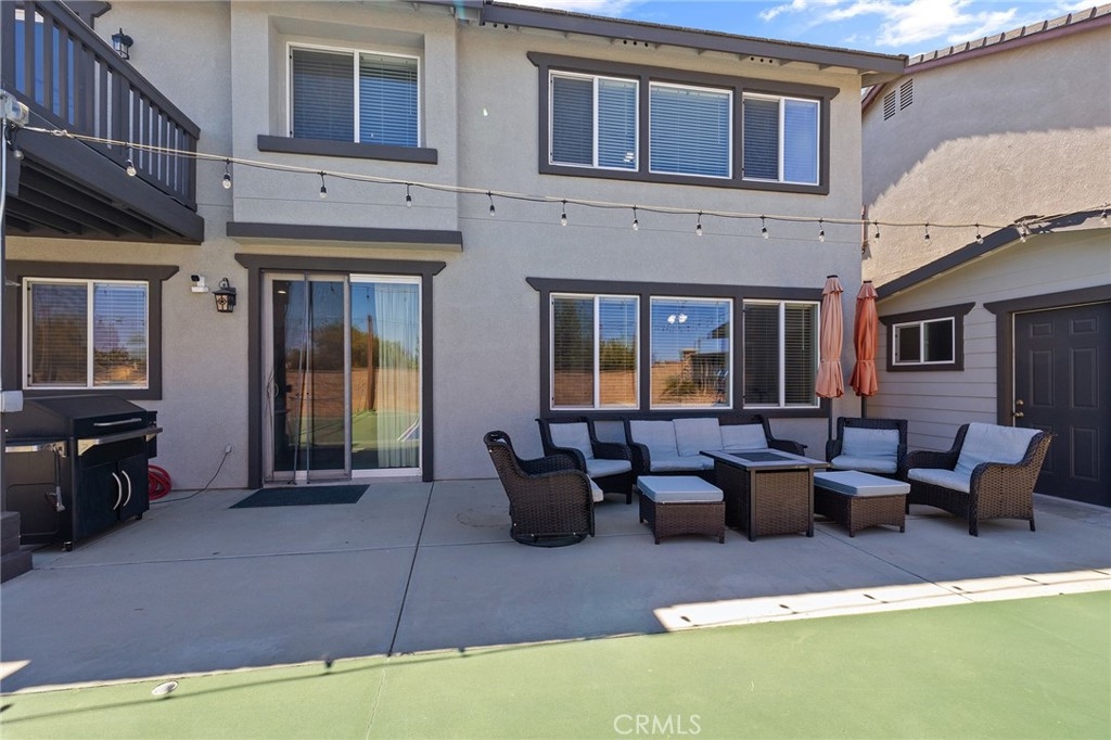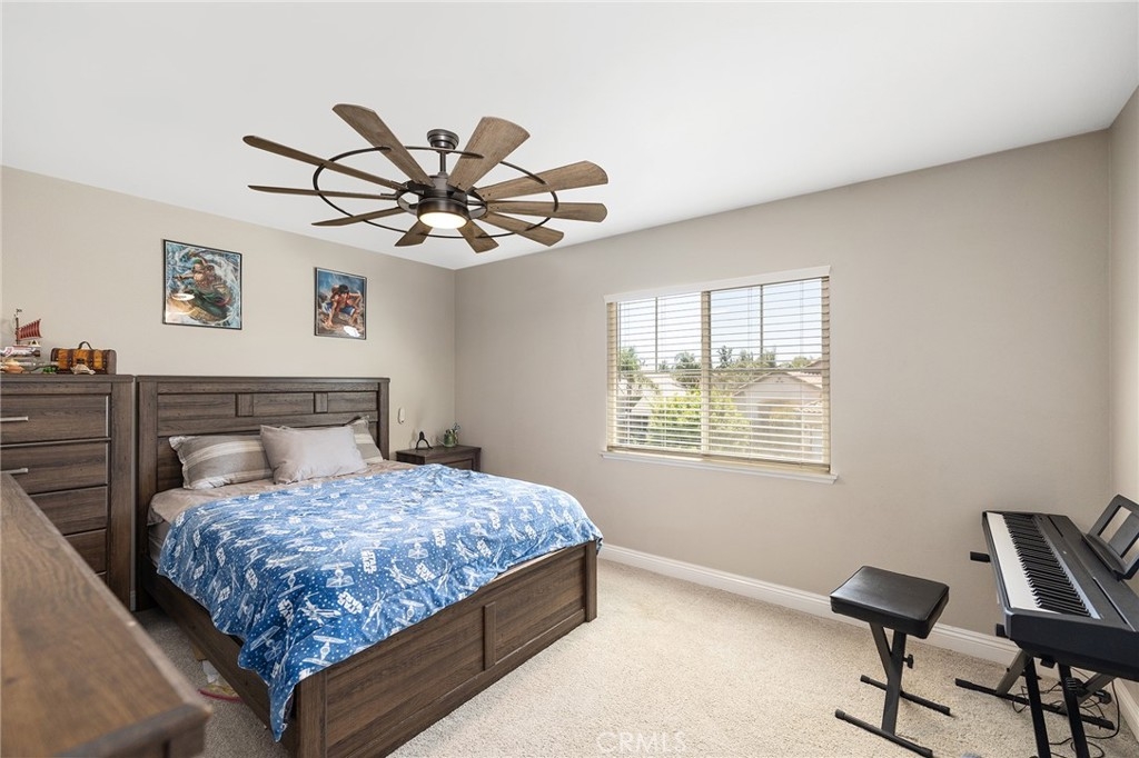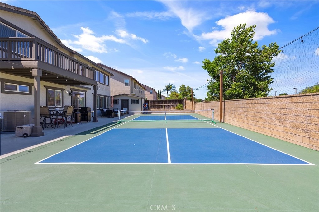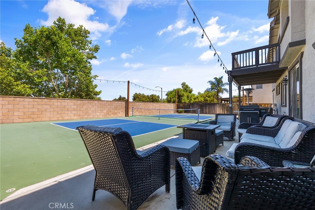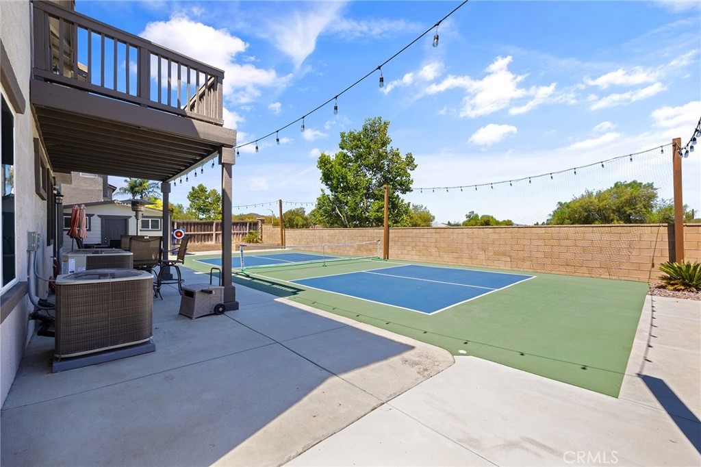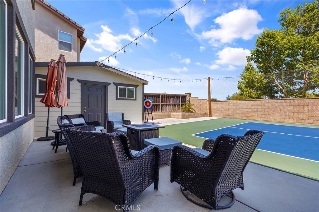 Stunning Mapleton Community Home - No HOA and PAID OFF SOLAR PANELS! Discover exceptional living in this beautifully appointed 5-bedroom, 3-bathroom home with 3-car garage, nestled in Murrieta's desirable Mapleton Community. This property offers outstanding curb appeal and sits on a large lot with complete privacy—no rear neighbors! Step through the front door into elegant formal living and dining rooms that set the tone for this impressive home. The heart of the house features a spacious kitchen with a large island, butler's pantry overlooking the formal dining room, and premium stainless steel appliances including a new dishwasher, oven, built-in microwave, and gas range stovetop. The kitchen flows seamlessly into the expansive family room, complete with a cozy fireplace—perfect for entertaining. A convenient downstairs bedroom and full bathroom provide flexible living options, while the downstairs laundry room adds everyday convenience. The second level houses three secondary bedrooms, including one with a jack-and-jill bathroom configuration. The oversized master suite is a true sanctuary, featuring an owner's retreat area and a sliding glass door opening to a generous balcony with great views. The luxurious master bathroom includes a separate shower, bathtub, dual vanities, and an enormous walk-in closet. An upstairs bonus room offers endless possibilities—transform it into a home theater, game room, or even a sixth bedroom to suit your lifestyle. Enjoy year-round comfort with a brand new 2024 HVAC system featuring high-efficiency climate control and advanced filtration for optimal indoor air quality. Experience ultimate energy independence with fully owned solar panels that reduce electricity bills to almost nothing while providing clean, renewable energy—no monthly lease payments and protection against rising utility costs for years to come! The backyard is an entertainer's dream, featuring a pickle ball/sport court, large storage shed, and extensive outdoor lighting with plenty of electrical outlets. The private setting with no rear neighbors ensures peaceful enjoyment of your outdoor space. This home has been meticulously maintained with newly installed blinds throughout and ceiling fans in every room, ensuring comfort and style in every space. Experience the perfect blend of luxury, functionality, and privacy in this exceptional Mapleton Community home—all without HOA restrictions!