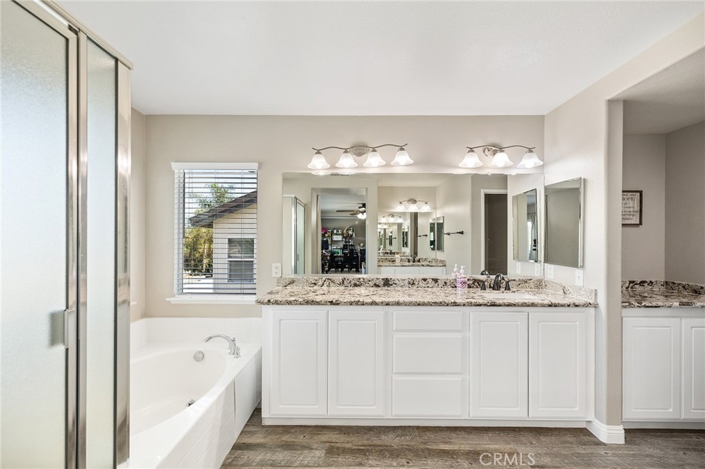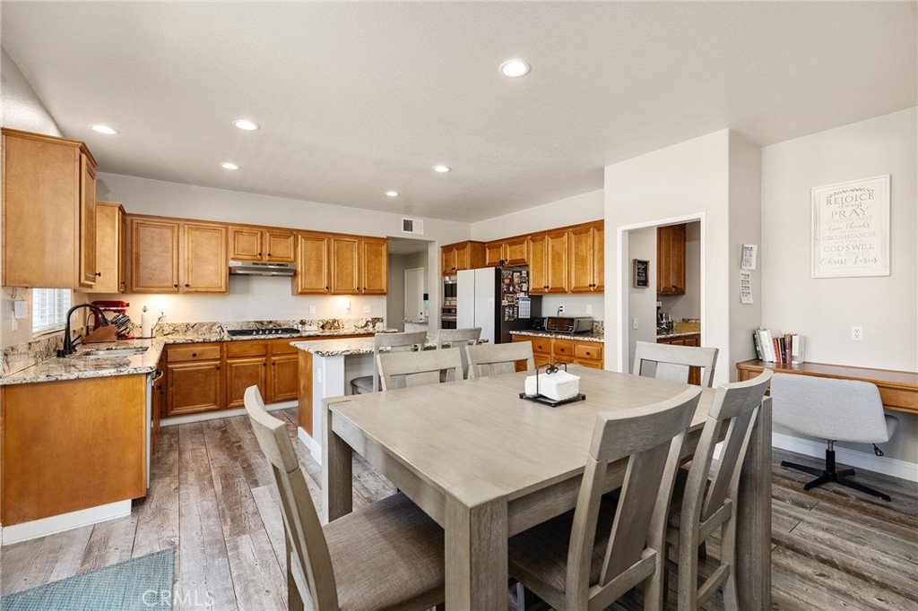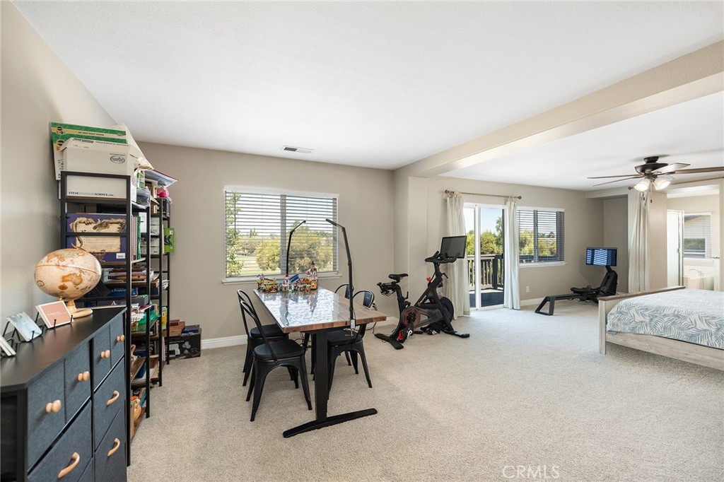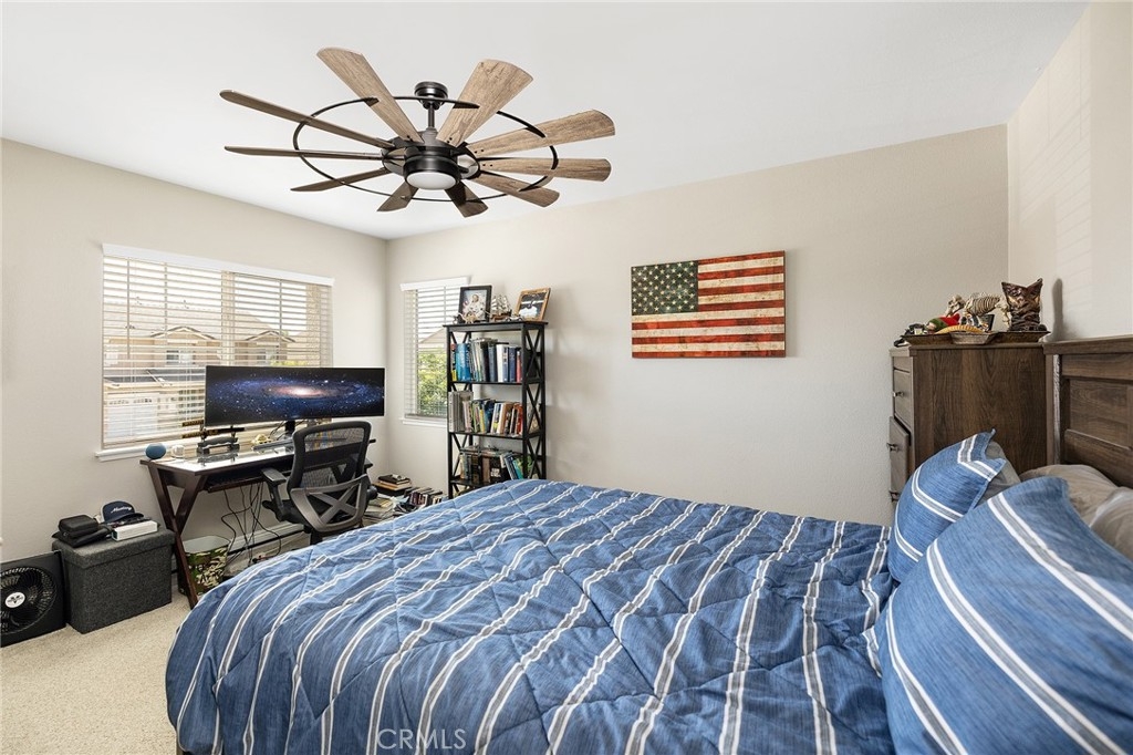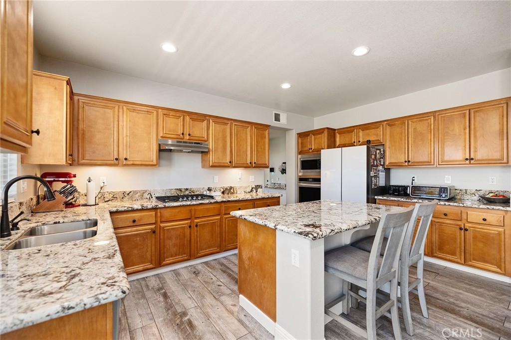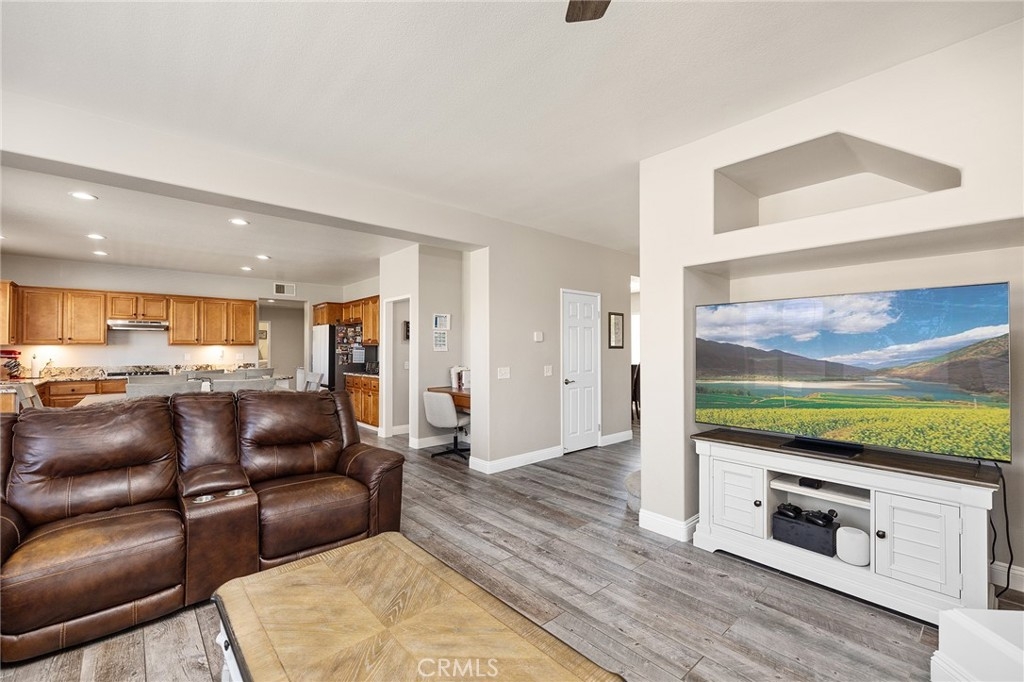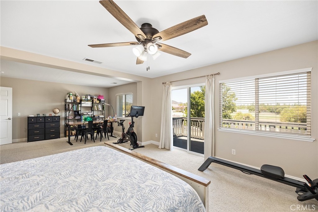Stunning Mapleton Community Home - No HOA and PAID OFF SOLAR PANELS! Discover exceptional living in this beautifully appointed 5-bedroom, 3-bathroom home with 3-car garage, nestled in Murrieta's desirable Mapleton Community. This property offers outstanding curb appeal and sits on a large lot with complete privacy—no rear neighbors! Step through the front door into elegant formal living and dining rooms that set the tone for this impressive home. The heart of the house features a spacious kitchen with a large island, butler's pantry overlooking the formal dining room, and premium stainless steel appliances including a new dishwasher, oven, built-in microwave, and gas range stovetop. The kitchen flows seamlessly into the expansive family room, complete with a cozy fireplace—perfect for entertaining. A convenient downstairs bedroom and full bathroom provide flexible living options, while the downstairs laundry room adds everyday convenience. The second level houses three secondary bedrooms, including one with a jack-and-jill bathroom configuration. The oversized master suite is a true sanctuary, featuring an owner's retreat area and a sliding glass door opening to a generous balcony with great views. The luxurious master bathroom includes a separate shower, bathtub, dual vanities, and an enormous walk-in closet. An upstairs bonus room offers endless possibilities—transform it into a home theater, game room, or even a sixth bedroom to suit your lifestyle. Enjoy year-round comfort with a brand new 2024 HVAC system featuring high-efficiency climate control and advanced filtration for optimal indoor air quality. Experience ultimate energy independence with fully owned solar panels that reduce electricity bills to almost nothing while providing clean, renewable energy—no monthly lease payments and protection against rising utility costs for years to come! The backyard is an entertainer's dream, featuring a pickle ball/sport court, large storage shed, and extensive outdoor lighting with plenty of electrical outlets. The private setting with no rear neighbors ensures peaceful enjoyment of your outdoor space. This home has been meticulously maintained with newly installed blinds throughout and ceiling fans in every room, ensuring comfort and style in every space. Experience the perfect blend of luxury, functionality, and privacy in this exceptional Mapleton Community home—all without HOA restrictions!