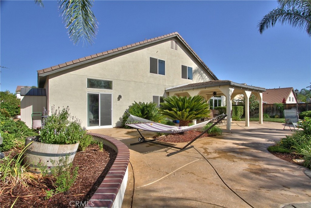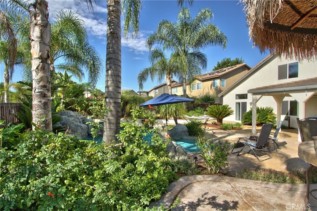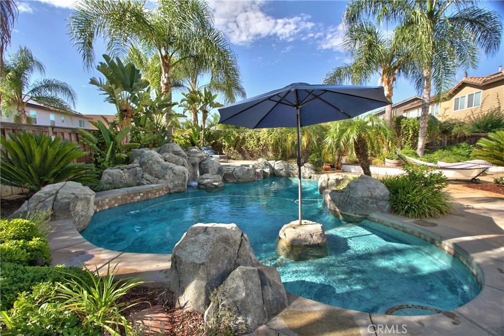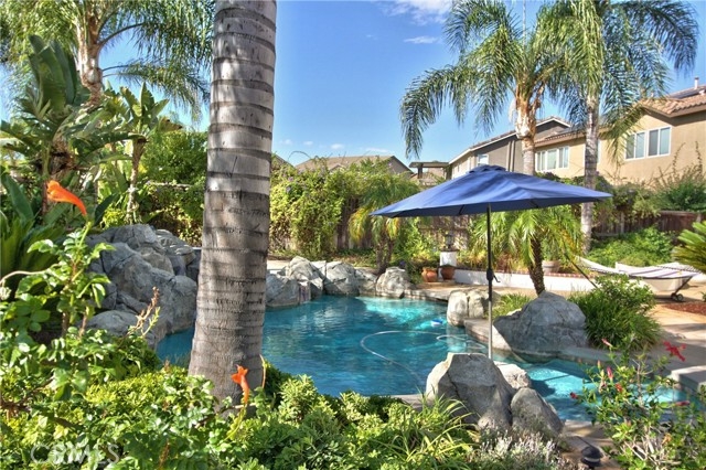 Turnkey, single story pool home, low taxes, no HOA located in the prestigious community of Mapleton! This home is an entertainer’s delight! Pulling up to your new home you will find curb appeal and large oversized three car garage. Boasting 2808 square feet with 3 bedrooms, office (this room can be used as a bedroom), and a large, oversized loft. As you walk into the front door you will find a spacious open area to be used as a formal living room, dining room, or even a pool table room. The kitchen offers a large island with two ovens, plenty of cabinets and counterspace open to the family room with a fireplace. All bedrooms are located on the first floor including the office/4th bedroom. The primary bedroom offers plenty of space with a large sliding door opening to the backyard. The primary bathroom has dual vanity sinks, soaking tub, shower, and large walk-in closet. The second floor offers a large open loft with a bathroom that can be converted into a second living space for merging families. Entering into the backyard you will feel a resort style entertaining space with a built-in barbeque, oversized patio covering, and beautiful low voltage lighting that makes the yard an oasis at night. This home is walking distance to Oak Meadows Elementary School, centrally located to the freeways, grocery stores and shopping. Only a short drive to the famous Temecula Wineries. Do not miss out on this beautiful resort style single story pool home! Do not forget to view the virtual tour!