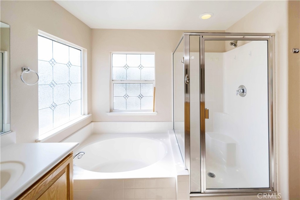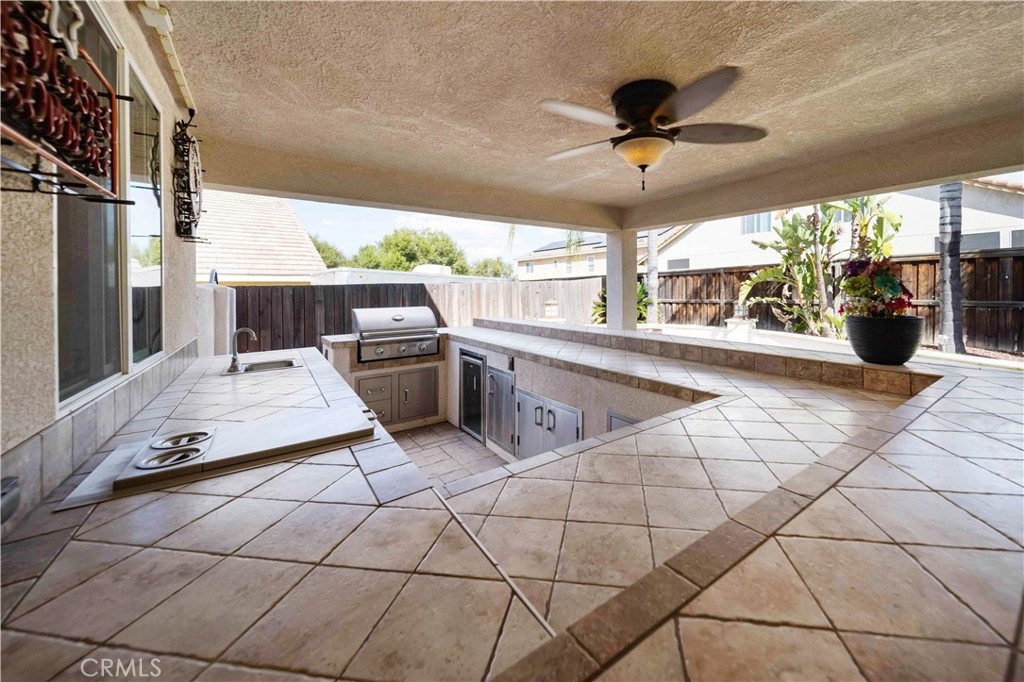 Welcome to 33962 Indigo Place, where thoughtful design, comfort, and true value meet. Nestled within a quiet Murrieta cul-de-sac, this 4,043 sq/ft residence is an entertainer’s dream that delivers far more than its price suggests. From the newly installed dual HVAC systems valued at over $30,000, to the high-end outdoor living setup, every upgrade here has been done with purpose and quality in mind. The backyard is the showstopper, featuring a custom-built stucco patio with integrated lighting, ceiling fans, and electrical, creating the perfect year-round gathering space. Enjoy an evening by the outdoor fireplace, or catch the game on the mounted TV while dinner sizzles at the built-in barbecue. The layout was designed for hosting, whether it’s holiday parties, family celebrations, or relaxed weekends at home. The spa stays with the property, offering an inviting retreat after a long day. Inside, upgraded tile flooring flows throughout the main level, leading to an open-concept great room. A downstairs bedroom and full bath with accessibility features offer flexibility for multi-generational living or guests. The kitchen blends style and function with a newer dishwasher and microwave, both replaced within the past few years, along with ample cabinetry and open sightlines for entertaining.