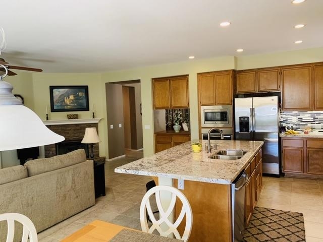 **Single Story Beauty** Large 4 Bedroom 3 Bath home with 2604 sq ft in desirable neighborhood. Shows as a model and Move In ready. Upgraded kitchen with huge island and breakfast bar. Extensive granite and tile work throughout. Ceiling fans in bedrooms & family. Beautiful fireplace with nice stonework. Large master bedroom with separate shower and tub. Walk in closet plus two additional closets in Master. Large 2 1/2 car garage. Back yard is beautiful with a park like setting. Covered patio and much stamped stained concrete. Located on Nice Family Street next to Springbrook Park. Just down the street to Kaiser and Loma LInda hospitals.